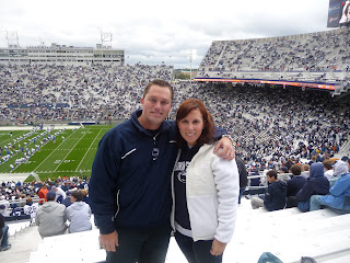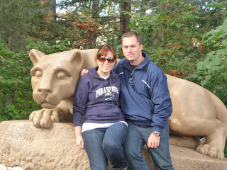 Sunday was just as busy... I went to Dolce (where we are having the wedding) with my mom and Chris' mom for a Bridal Expo. Chris' mom had never been there before, so we gave her the tour of the Ballroom, the Deck, and the Courtyard. We got some cool ideas for flowers, met with some photographers, and got to try some of the cake that I will be having at my wedding. It was a lot of fun. I then ran home, changed, and Chris picked me up so we could go to the Giants Game. It was my FIRST pro football game ever! We first drove to my friend Patrice's house to meet up with her and her boyfriend so the 4 of us could drive in together. We met up with our other friend at work Jaeger and Jenn. The 6 of us tailgated (burnt some hot dogs) before the 8:20 game. It was cold, but nothing crazy... fortunately Chris brought the Penn State blanket for me to use. Unfortunately the Giants lost :( But still, it was a fun first game!