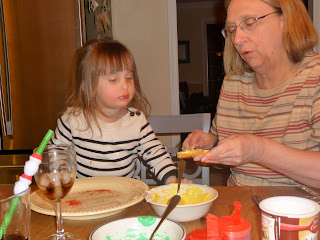 Kaitlyn decorating cookies with Grandma... she loved piling on the sprinkles!