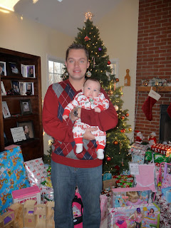 For real Christmas this year, we split it up between the Freels and the Flinns. Chris and I started our "winter vacation" on Christmas Eve and we are off until January 3rd... YAY!!! Christmas Eve we headed over to the Flinn house for lunch and cookie baking. I got to see the tradition in action of making the Christmas knots... it was hilarious to see Chris get his hands stuck in the very sticky batter. I wish I had a picture but since my hands were equally dirty, the camera was staying in my purse. That evening we headed over to the Freel house (love that they are only 15 minutes apart) for Christmas Eve dinner. This was Luke's last night in NJ (heading to Toronto Christmas night) so it was me and Chris, my parents, and Luke for dinner. Dinner was great and then we made Chris watch Elmo's Christmas Countdown (our new little tradition) and the Grinch (the Jim Carey version). After some present opening, we figured the night was complete and headed back to Morristown where my head hit the pillow hard!