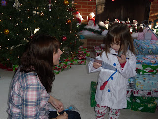 Chris and I got Kait a doctor dress up costume... I was her patient and she was writing me a prescription