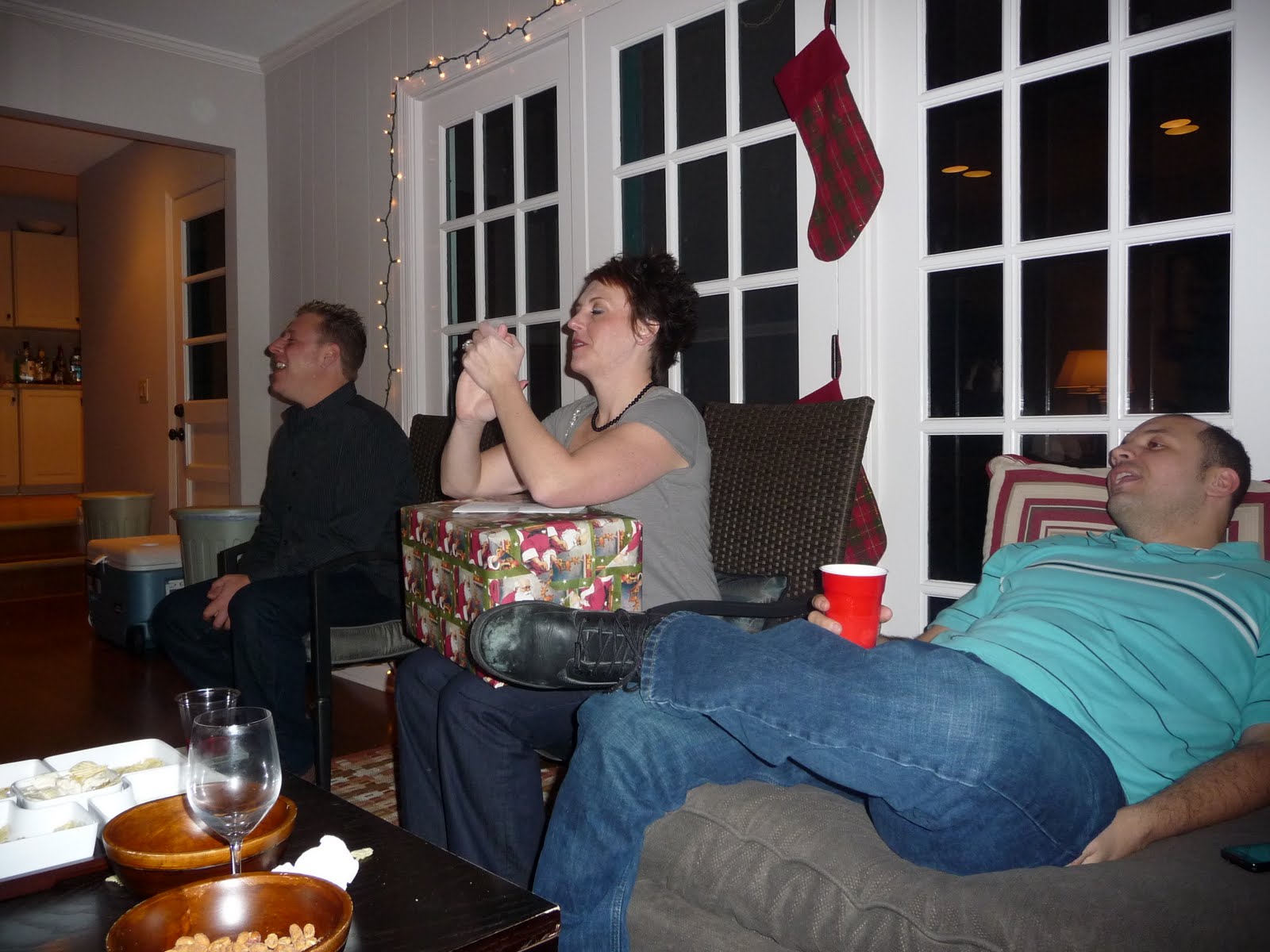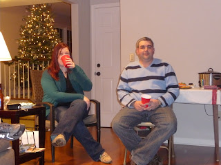 When Chris was living in Waldwick with Kelly and Aimee, they started a tradition of going out for Christmas dinner and then exchanging gifts. As the group grew with boyfriends and girlfriends that became husbands and wives, and new roommates and friends, the tradition grew into a yearly party called Festivus! So every year we get together, do a secret Santa, and enjoy each other's company over some great food. Chris and I were only able to go to half the party because we also had another Christmas party that evening, but we were so happy that we could go for a little bit. Kelly and Allan hosted a great party this year... thanks for the great evening!