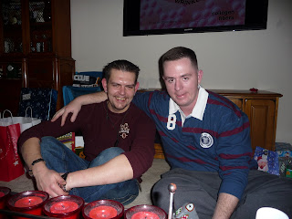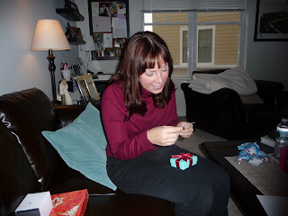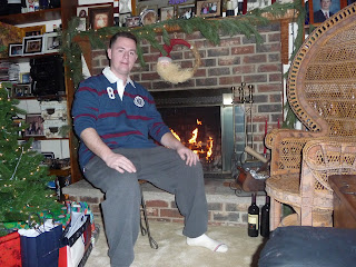 After opening our gifts we headed back over to the Flinn house for all the usual Christmas celebrations. Justin made the fire... the yule log on TV just wasn't cutting it for him. Justin acted as Santa (as I learned he is every year) and passed out all the gifts to everyone. We had blueberry pancakes and then waited for the rest of the guests to arrive. Chris' Aunt Doreen came over with her boyfriend Paulie and then the Flinn's friend Joanne came over. We had a nice relaxed Christmas... I even got a short nap :) Dinner was great... I'm learning that Italian Christmas dinners are different than my family's. My family basically does a second Thanksgiving for Christmas (which I love!), but I learned that Italians are more into Chicken, Fish, and Pasta... all of which are very yummy! I love learning the traditions of different families... now to decide which ones I will pass on with our future family :)