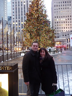 So we got to NYC around 3/3:30, parked the car near the theater, bundled up, and started walking over to the Tommy Store. It was freezing and I couldn't have been happier when we finally got to the store. There were some amazing deals and then his discount on top of it... I got three tops :) We then hit the tree and got our annual picture in front of it.