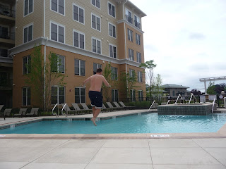 Chris was super excited that the pool at the apartment was opening this weekend. It opened on Saturday at 10am, so he made sure we were the first down there and he was the first to jump in. He was pretty annoyed that I took this picture of him though.