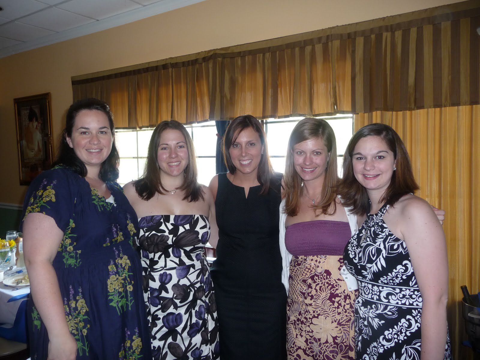 My matron of honor - Trisha, and my 4 bridesmaids, Marlaina, Amy, Jenn, and Ingrid, threw me an amazing shower last Saturday (June 19th). It was held at an italian restaurant called Torino's that my family has been going to for years. It wasn't a surprise to me cause I hate surprises. And I would have known something was up when Trisha came down with Kaitlyn for now reason and started doing crafty things for the favors and centerpieces in the dining room.