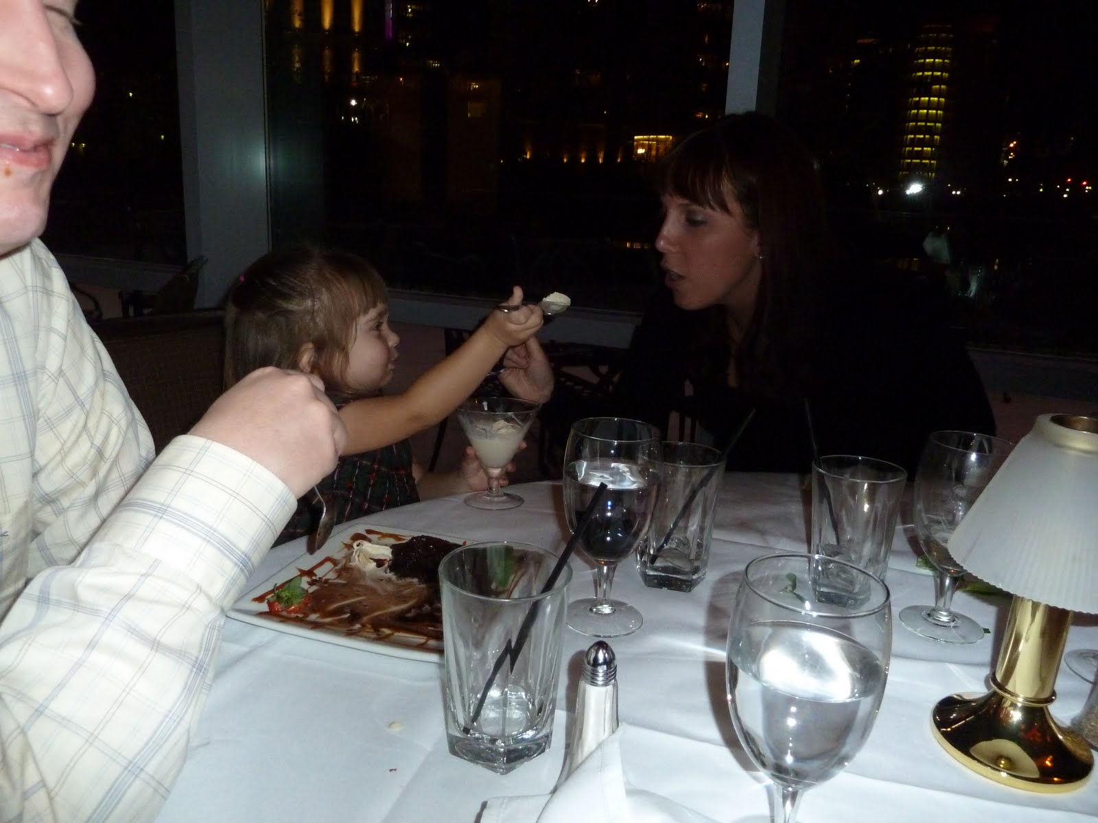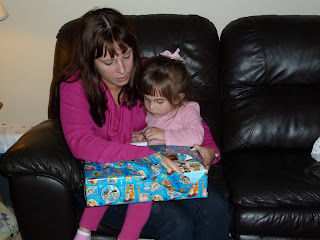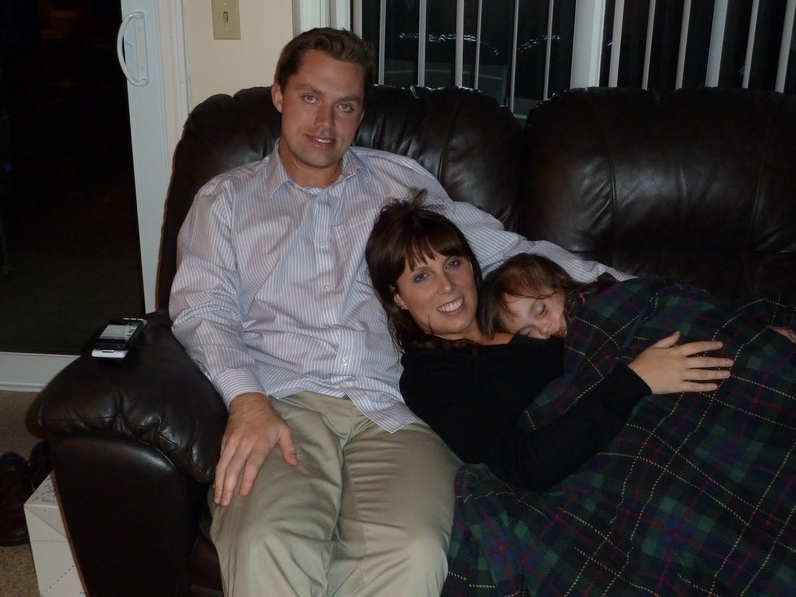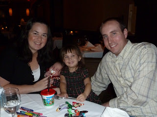 Kaitlyn, who skipped her nap that day was exhausted and fell asleep in the car on the way home from the restaurant. Since it was only 7pm, we let her sleep on me downstairs hoping she might wake up... we figured if she went to bed that early she wouldn't make it through the night and would be waking her parents up at an ungodly hour.