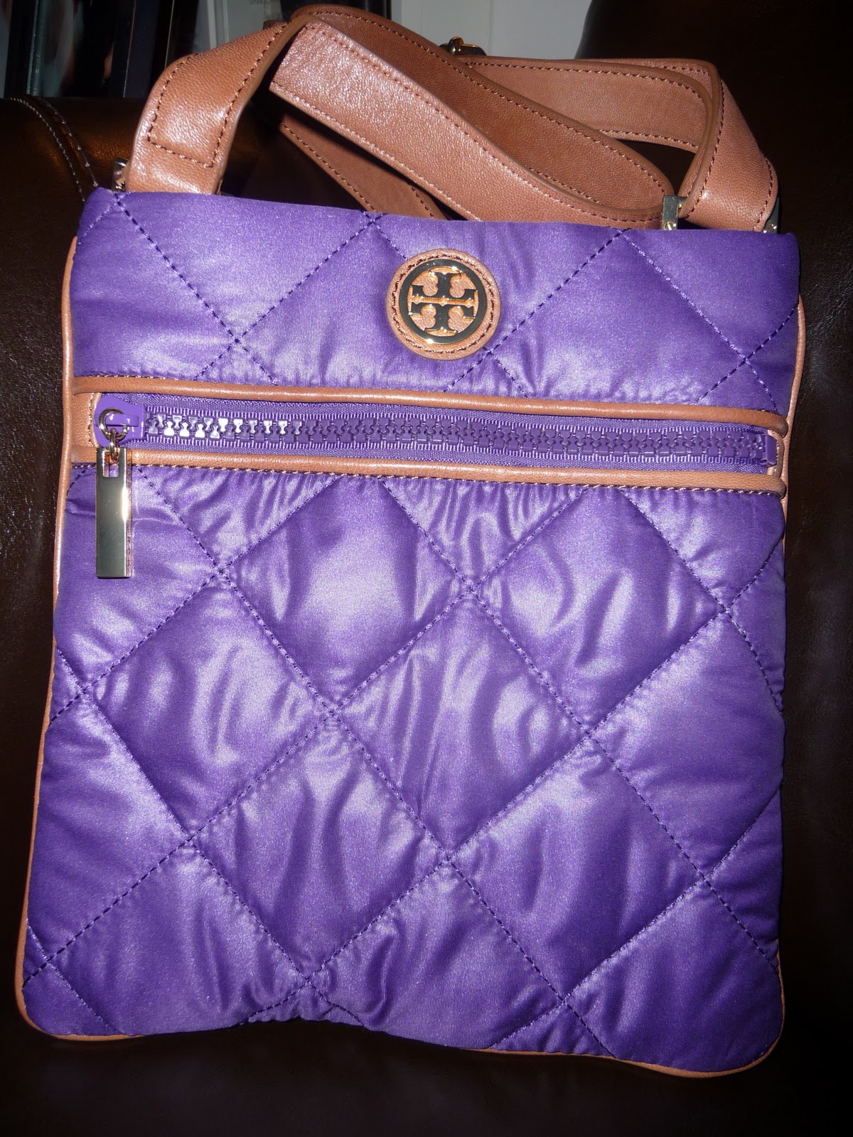 After dinner Chris gave me my Valentine's Day Gift... I know, he totally spoiled me this year. Here's the back story with the gift... Right now we only use one car because we don't want to pay for 2 spots in the apartment parking garage. It's a lot of money for a spot and since Chris takes the train every day to work, the majority of the time we don't need it. But as a result, Chris has a hard time during tax season going anywhere without me knowing. Since I work Saturdays these couple of months, our only full day to run errands is on Sunday, so we do a lot of them together. So when he told me he needed the car to run some errands on his own, I put two and two together and figured he was trying to buy me a gift. I had no clue what he was getting me. He tried to trick me and told me to leave the GPS in the car, which made me think he was getting my gift at a place he didn't know how to get to. This threw me for a loop, and then that night when he came in with a huge gift bag I was even more confused. I couldn't imagine what he got me that would require that big of a gift bag! Even though I'm not good with waiting for surprises, I was good and didn't try to peak or look at the GPS to find out where he went. So when he gave me my gift tonight, I was pleasantly surprised to open this Tory Burch bag!