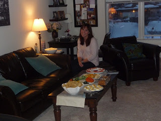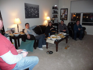 Now while the food at a Superbowl party is very important, the game is the main attraction. Fortunately we had the huge TV to watch it on. We even had the kitchen TV on so that no one would miss a moment when refilling their plates or getting another drink. The Superbowl is probably one of Chris' favorite events since it combines his love of sports and his background of marketing. He not only is really into the game, but he is just as into watching and rating all the commercials. It was a lot of fun to finally have a place where we can have a few people over. I can't wait to have a bigger place so we can invite even more people! I love entertaining and found that getting ready and making the food was a lot of fun!