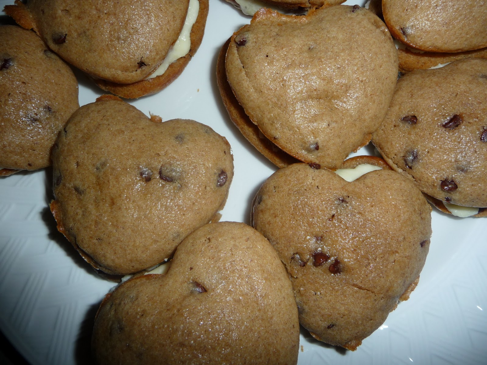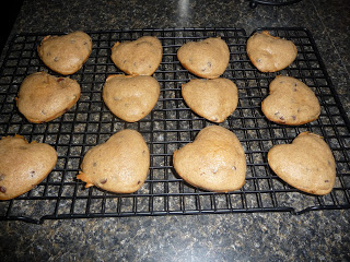 Fortunately, I was able to leave work on time and was able to meet Chris at home at the regular time. I decided I would make Chris a nice dinner and dessert for Valentine's Day. I made some chocolate chip whoopie pies in the shape of hearts. It got a little messy but in the end they turned out well :)