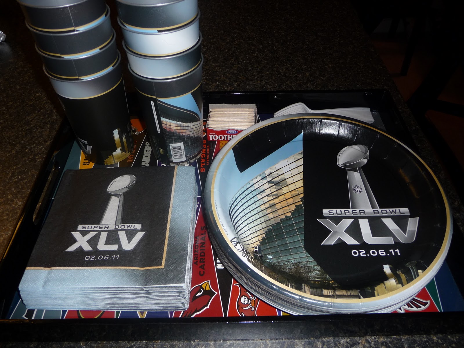 Mom got me these super cool Super Bowl Plates, Napkins, and Cups