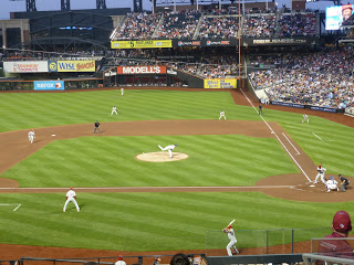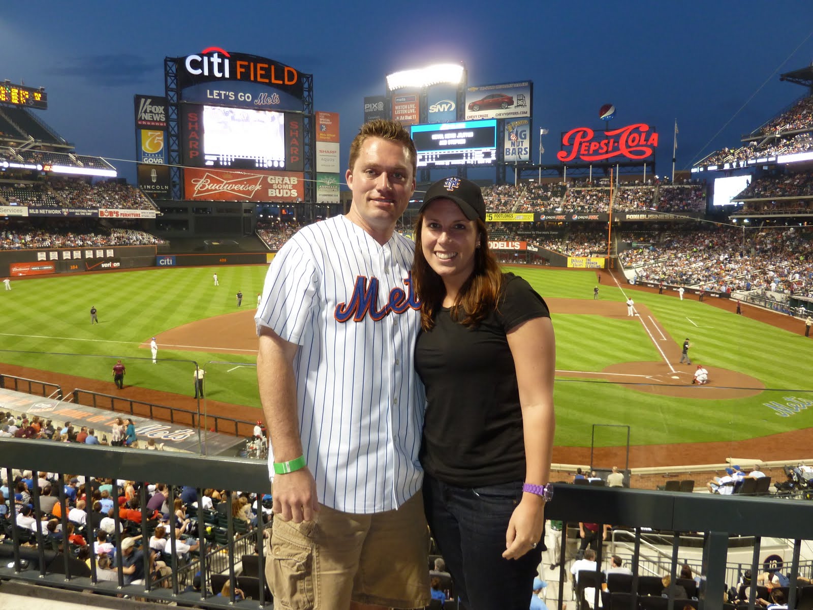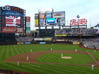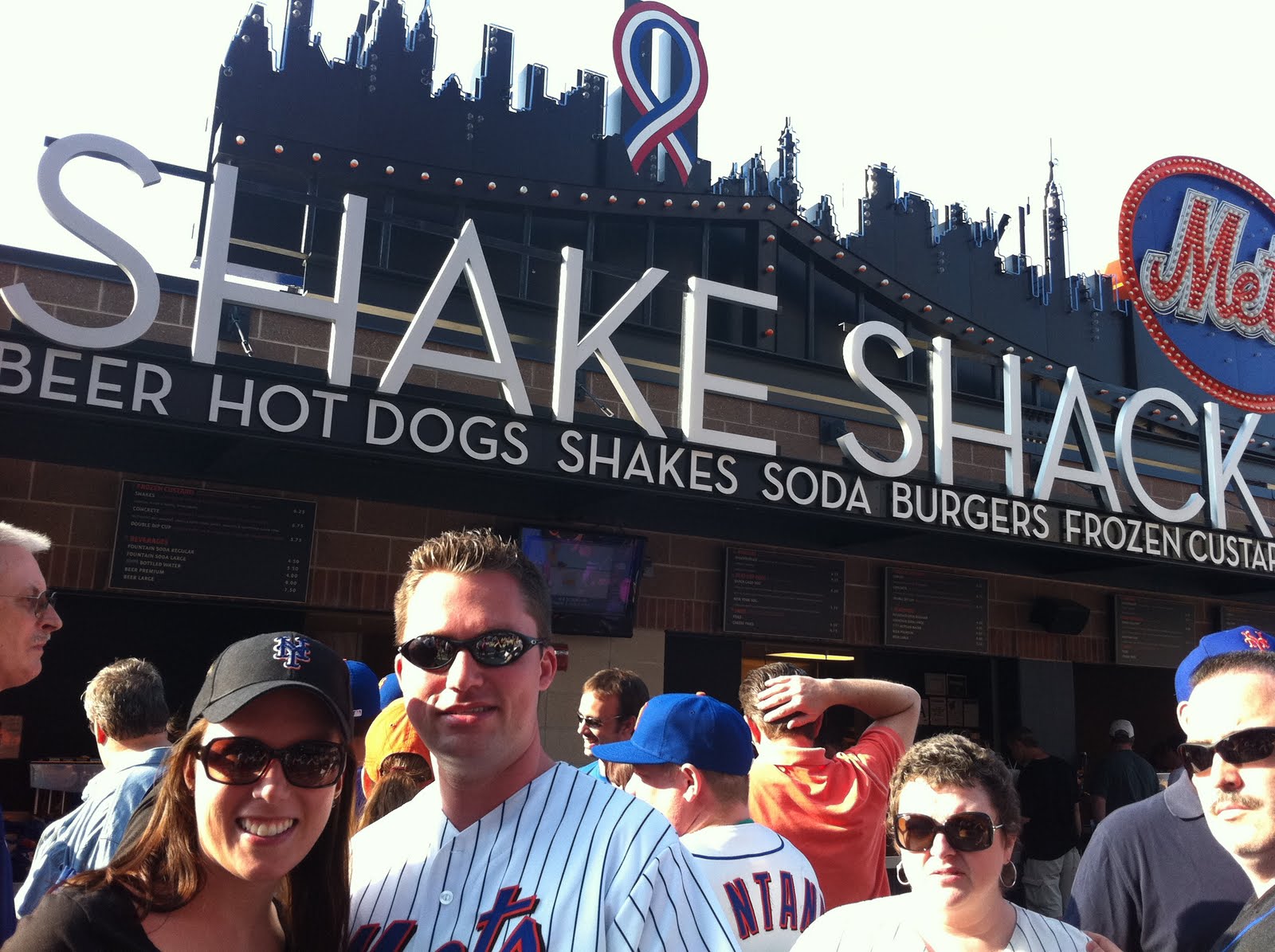 We spent a couple hours there and went up at 2:30 cause we had to get ready to head to Flushing that night. Last minute Chris got us tickets to the Mets vs. Phillies game on Stubhub. He was able to get great seats at a really great price and we were in the Champions Club. We were able to pay for the buffet (only about $20 per person) which gave you all you can eat and sodas for the whole game! I think we got our money's worth in Diet Coke alone! But the buffet wasn't enough, we had to go to the Shake Shack! I had never had Shake Shack so Chris said I had to try their milkshake and burger... wow was it amazing! I will definitely be going there again! The game started off great and the Mets were doing well, but the Phillies came back in the end and won :(