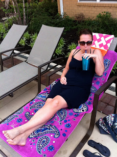 Sunday it was back to the pool. I was a little worried at first cause it was very cloudy and breezy in the morning, but it got super hot and sunny by the afternoon. Another great day at the pool! Sunday evening we headed over to my parents' house for a Sunday Dinner. My mom was excited because this is the first Sunday in a while that she was home and not driving up to Rhode Island. When Chris and I got married she hoped to have Sunday dinners with us (just like she had with her parents), but when she started babysitting Kaitlyn and Matthew every Monday, that went out the window. Now she'll be watching them on Tuesdays, so we can start that tradition :)