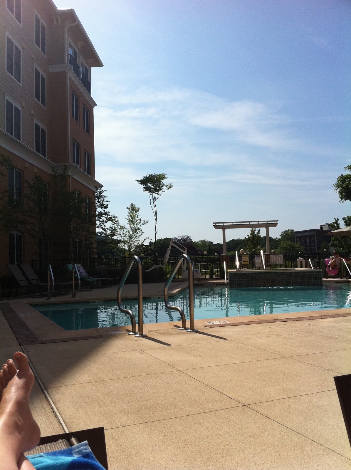 Saturday morning we got up early and headed down to the pool right when it opened at 10. It wasn't too sunny yet, but we were glad we got chairs when we did, cause it got packed fast.