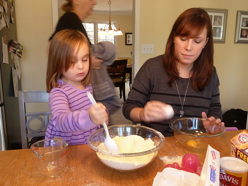 Chris and I headed over to my parents' house early Thursday morning. To avoid getting in my mom's way when she was making the turkey, Kaitlyn helped me make cornbread muffins first thing. She did a great job mixing, but I have to say that the muffins did not turn out as I expected. We all joked that we could use them for hockey pucks instead of eating them. Maybe I should take a hint and next year just relax.