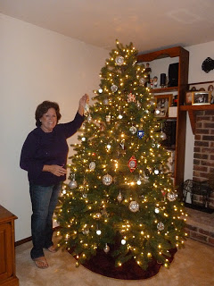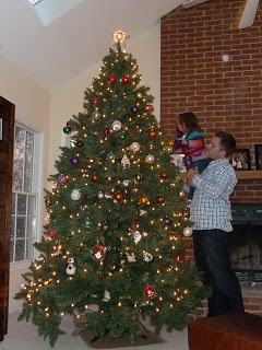 Friday evening we helped my parents put up their Christmas tree. Kaitlyn was very excited to put the ornaments on and wanted to put every single one on... even the ones very high up.