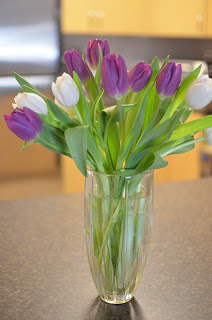 Saturday... my actual birthday! I had to work unfortunately but I still had a great birthday. Chris surprised me with some flowers when I got home... I love how they look so much like Spring!