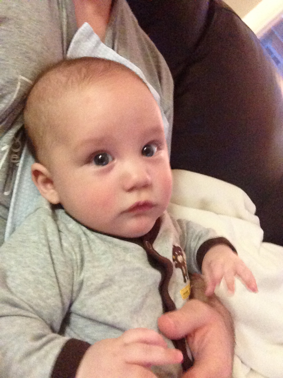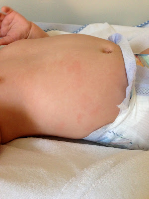 Milestones: First allergic reaction :( He also pulled my glasses off my face for the first time. I was used to the hair pulling, but this was a surprise to me!