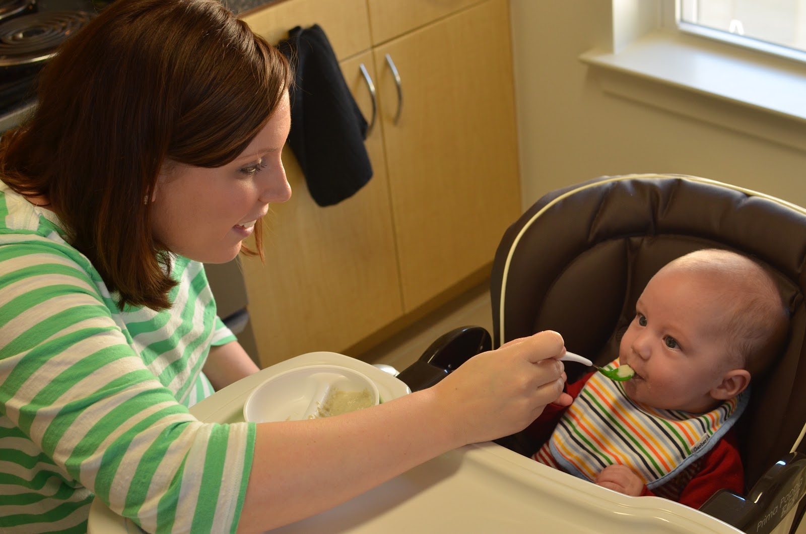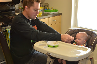 Grandma came over to watch Noah on Wednesday and she fed him his "dinner". Noah loves eating with her... she lets him hold his own spoon!