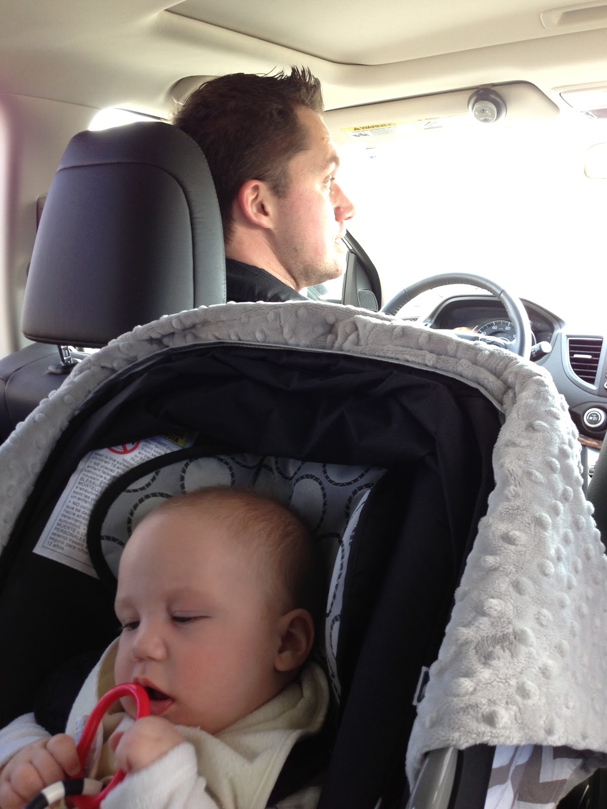 Crying: Just yesterday, Noah had a horrible car ride and was hysterically crying. Thankfully my mom was with me, so she drove and I tried to console Noah. I think he had some really bad gas, cause half way home he had this big bubble and then a lot of spit up. After that he started calming down and ended up falling asleep. It was so hard to see him in such pain and so upset and not really be able to help him.