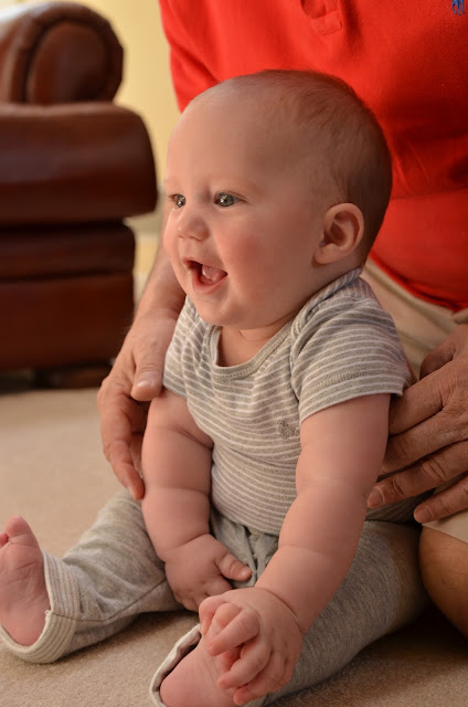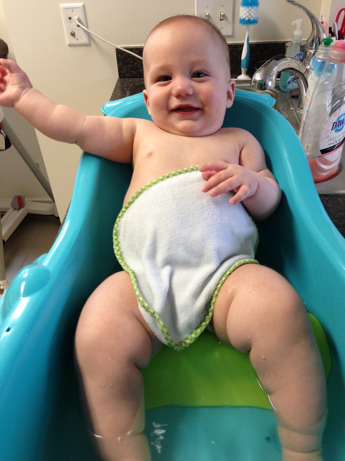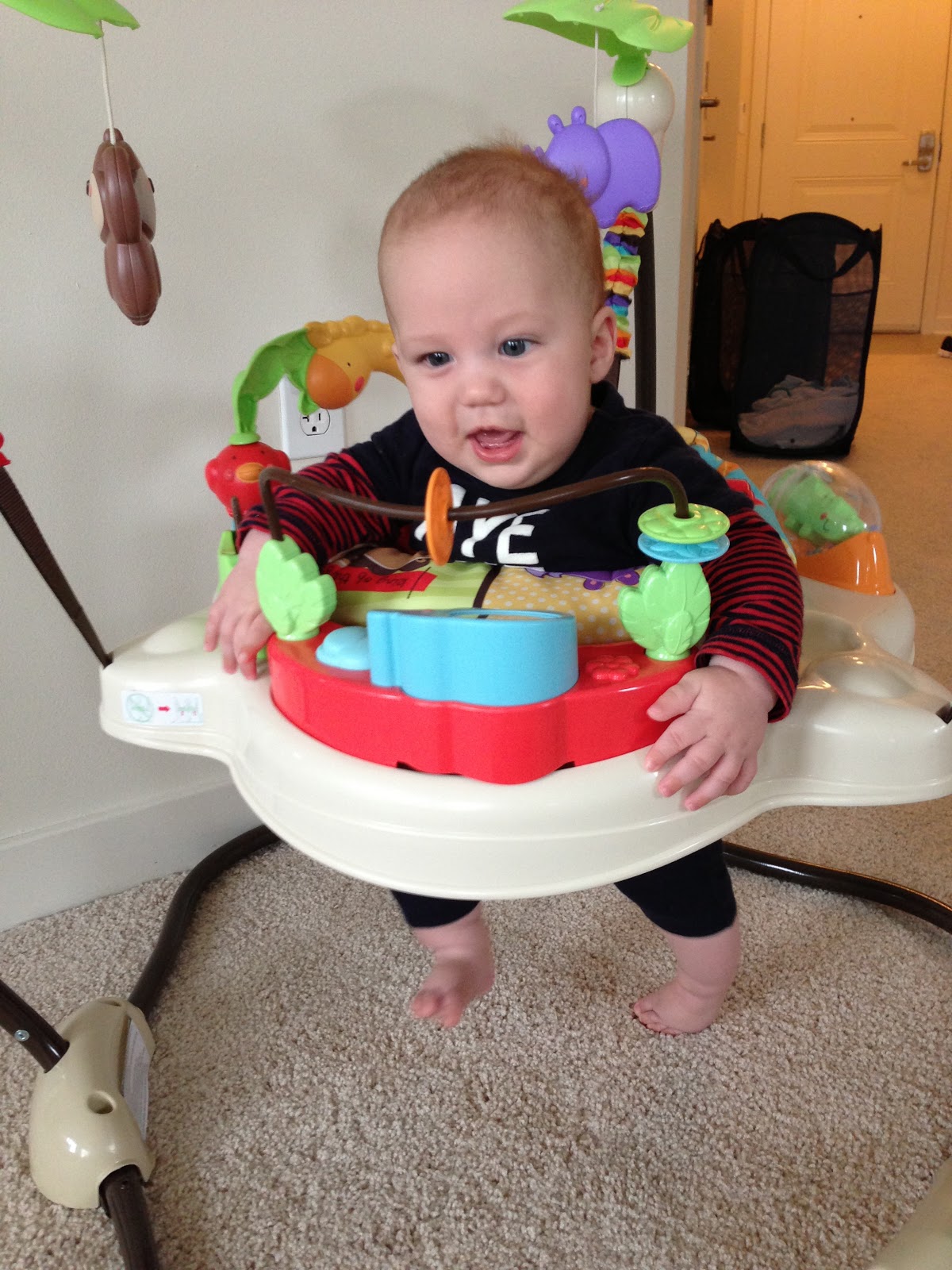 Then it was time for the jumperoo. We just set it up on Sunday, and so far he really seems to enjoy it. You can see the laundry baskets in the background... I am constantly doing laundry!
