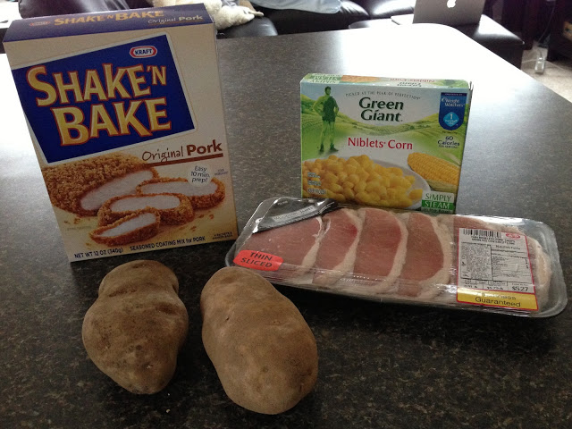 We had pork chops (a la Shake and Bake) with baked potatoes and corn for dinner, so at 5:30 I preheated the oven and got the potatoes in.