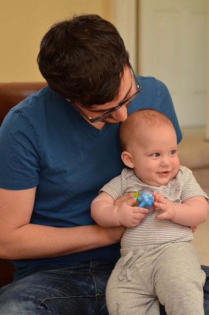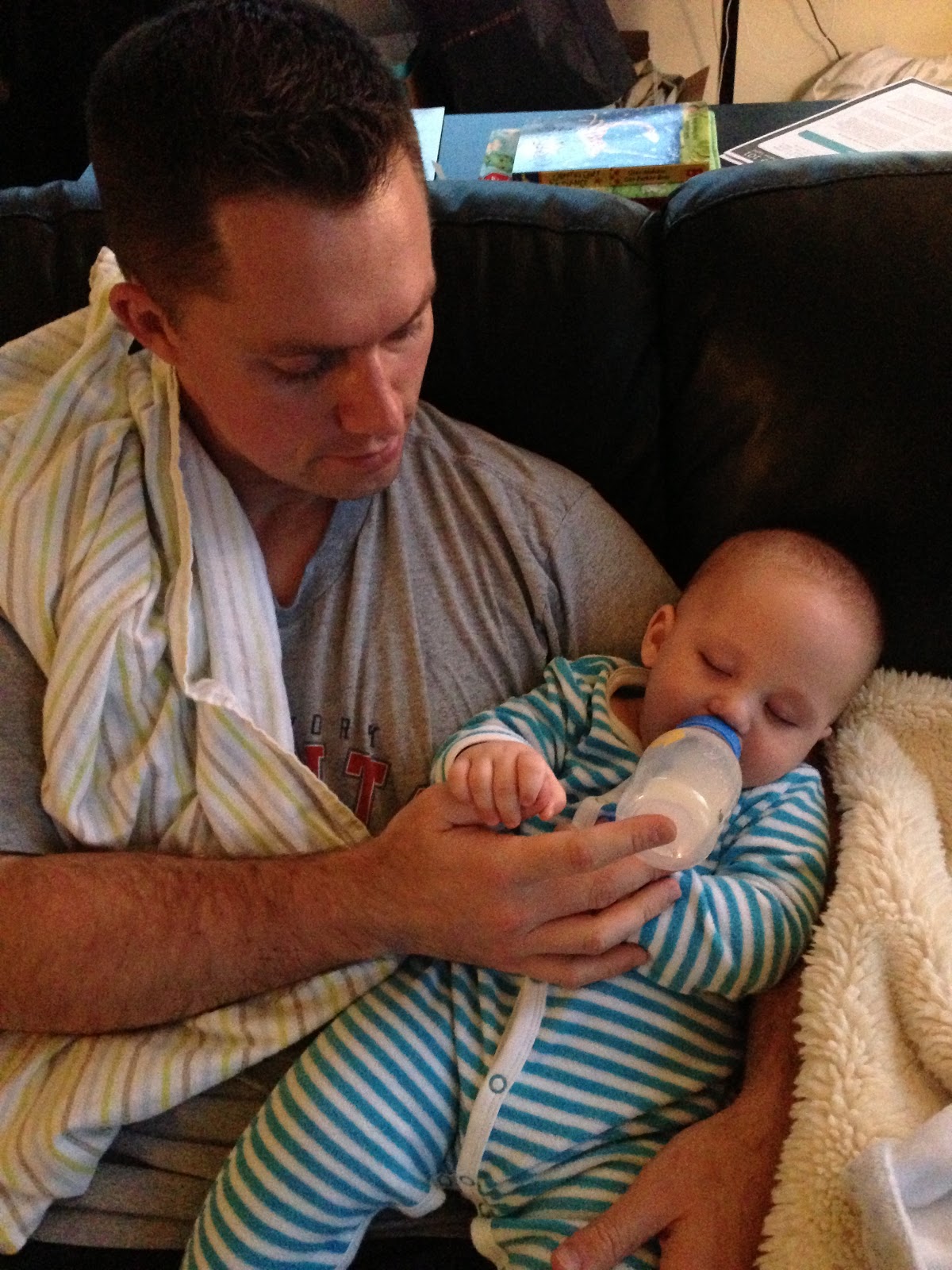 I guess the jumperoo (and no real afternoon nap) really tired Noah out, because he fell asleep while drinking his bottle with Chris at 7:30.
