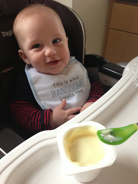 but it only lasted 15-20 minutes. So we were back to playing and then had an afternoon snack. Today we tried Banana Yogurt Blends for the first time.