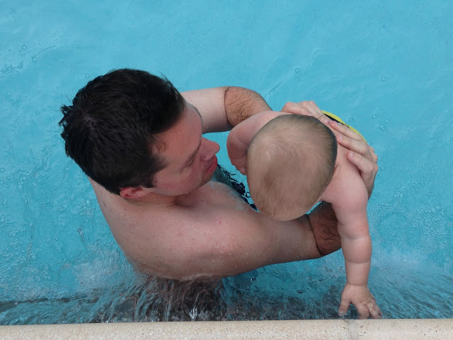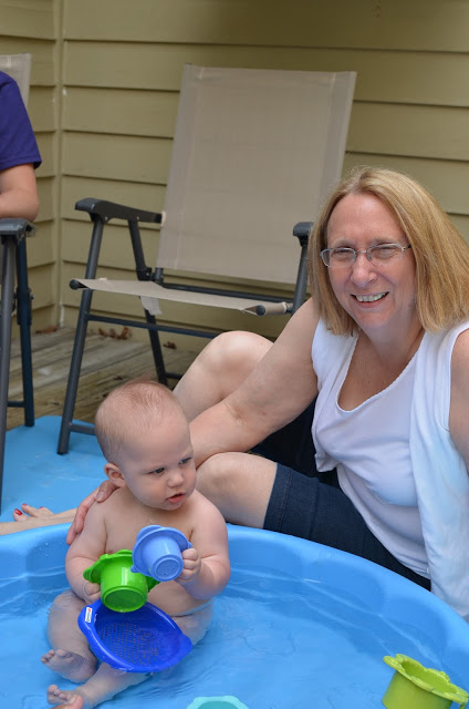 On Tuesday, we headed over to my parents' house. Noah played with Uncle Luke and Grandpa even let him go swimming in their little pool without a diaper or bathing suit on! I told Grandpa that if he makes a mess, Grandpa had to clean it up! Thankfully, no messes needed to be cleaned up!
