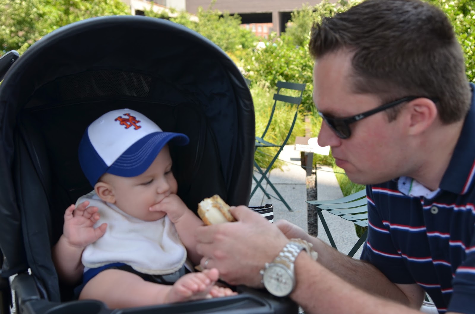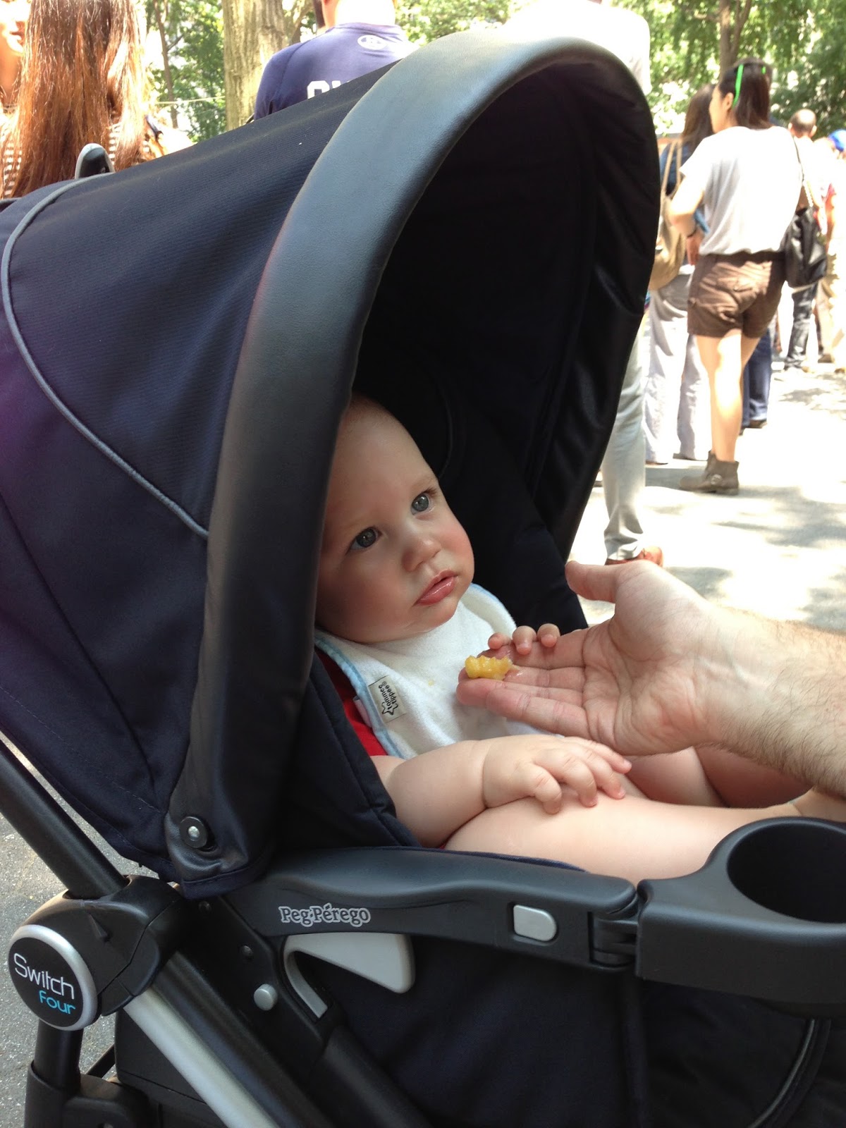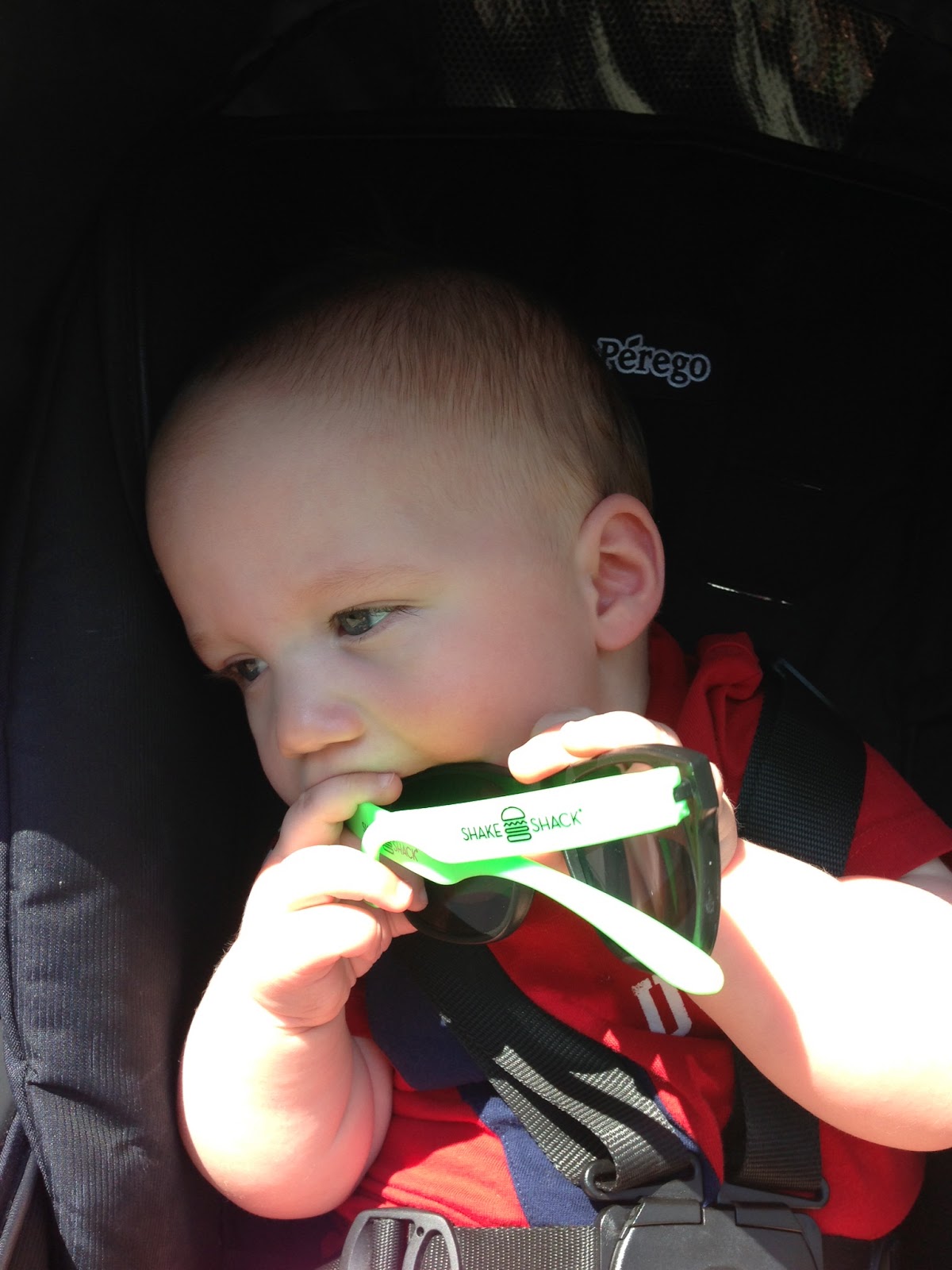 Diet: This week he tried pumpkin and orange in some Stage 2 blends. He seemed to like them both. He also had his first french fry at Shake Shack on Friday, and I gave him a couple when we went to lunch with Jill. Next I want to give him some string cheese and maybe some little pasta to try.