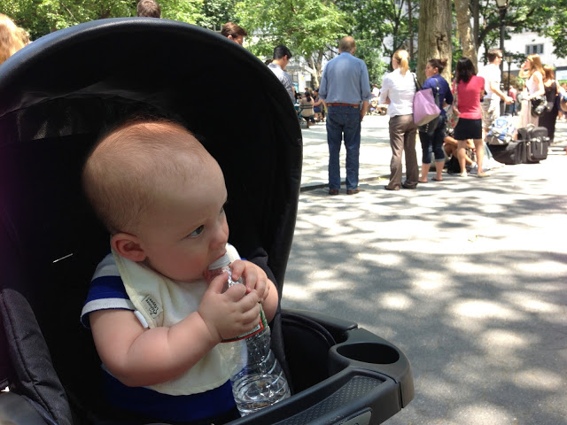 Sleep: This past week he's been getting up once a night normally. There were a few nights where he got up twice, but I think that was because his schedule had been thrown off during the day. The one night was after we had gone to the city all day and he just took naps in his stroller or the car. And the other time was after he had had a very long afternoon nap... over 3 hours! Wednesday night was the worst cause he woke up multiple times at night and then didn't really nap well during the day... I think the lack of sleep affected me more than Noah.