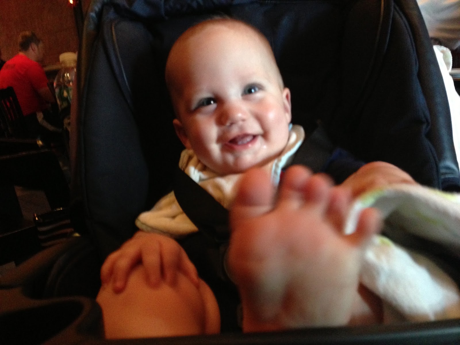 Health: I think Noah is teething again. He was playing on the floor and I was watching TV sitting on the couch, and all of a sudden he just bit my toe!