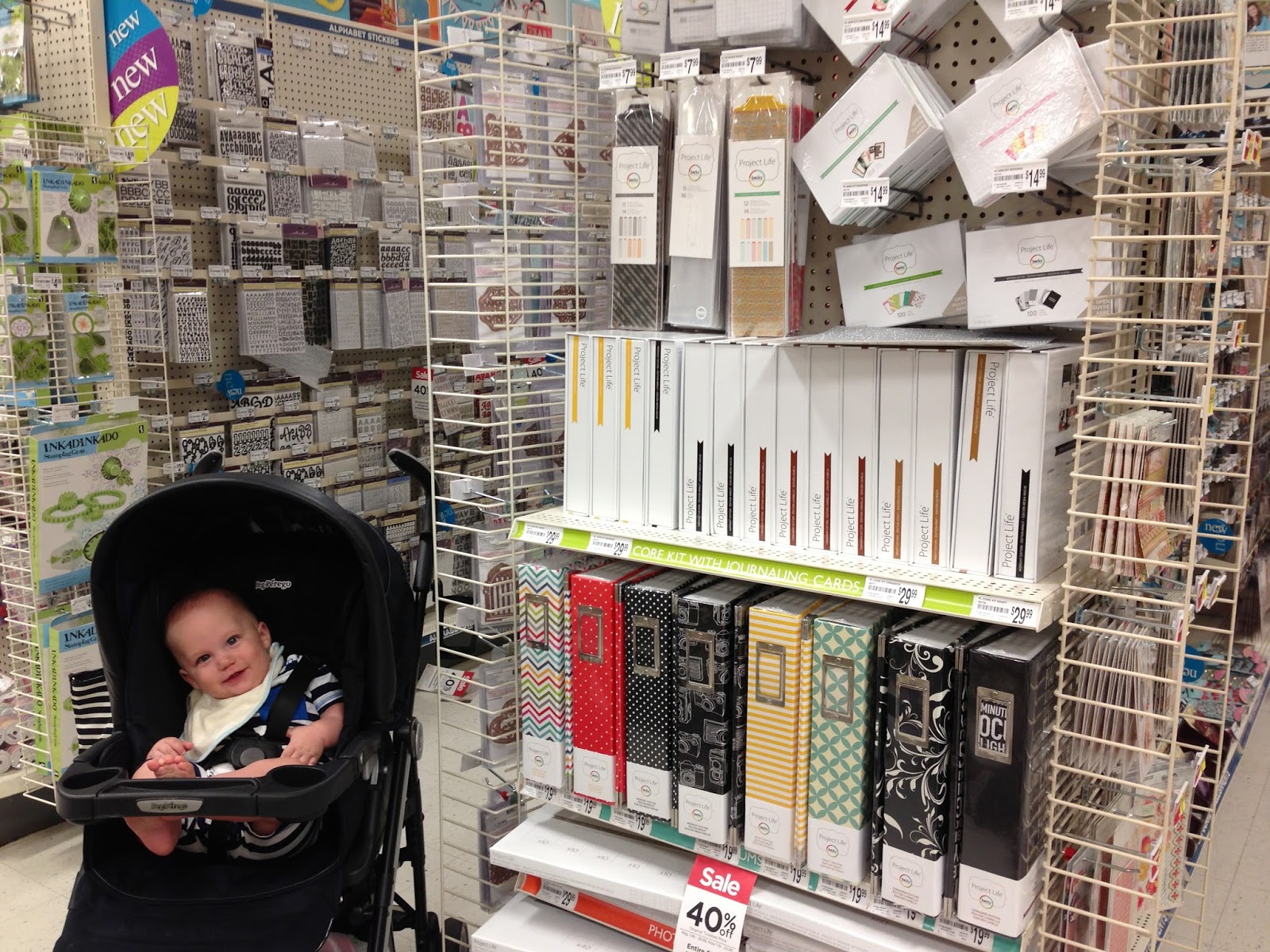 On Wednesday, we met my friend Jill for lunch again. Afterwards, we ran a few errands and Noah kept smiling and giggling at people in line. Usually he just stares at strangers, so it was a surprise when he was smiling back at them! We stopped by Michaels and I was able to pick up some Project Life stuff... I'm so glad Michaels is now carrying it!