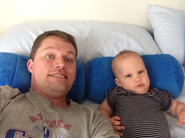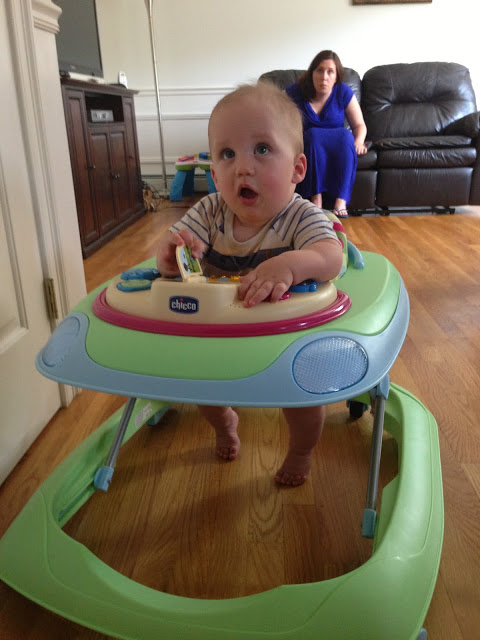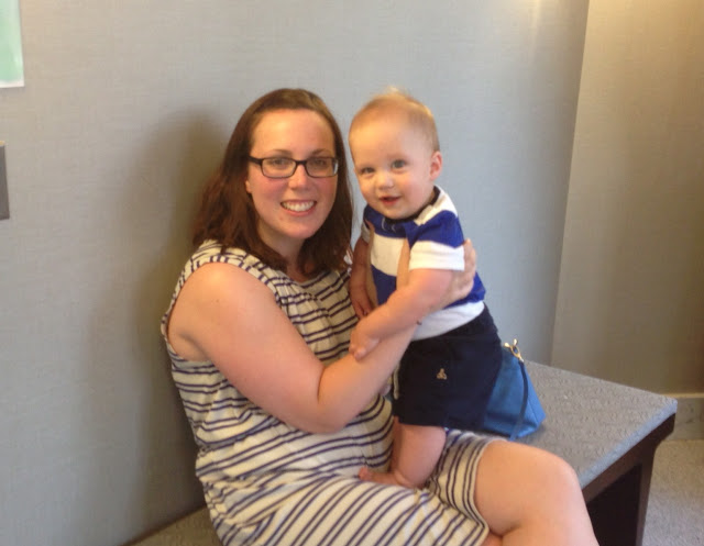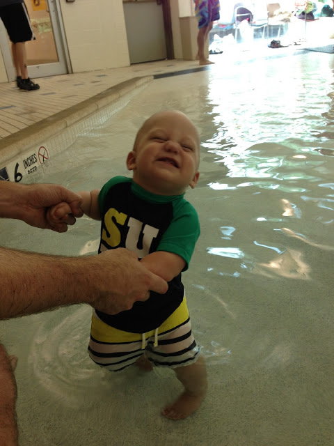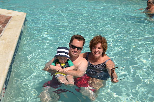 We went back to the condo for lunch and a super quick nap... really, he only slept for 30 minutes (and did I mention that he didn't sleep at all on the car ride down!!!). So we reapplied some sunscreen and went to the pool. The pool was so warm and it was salt water instead of chlorinated. Noah had a blast just watching the other kids play in the pool with a beach ball. It was like he was watching a tennis match the way his eyes just went back and forth following the ball. Then when it was his turn to play with it he was in heaven!