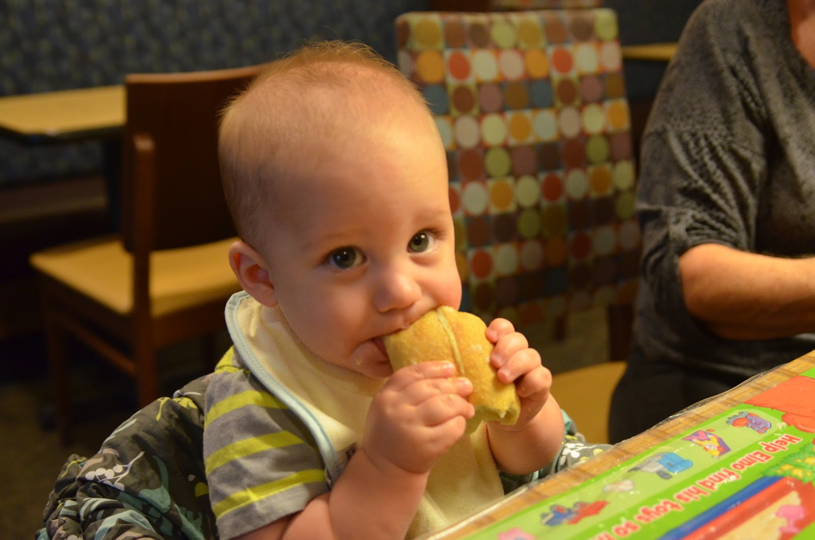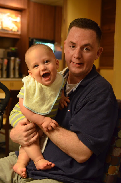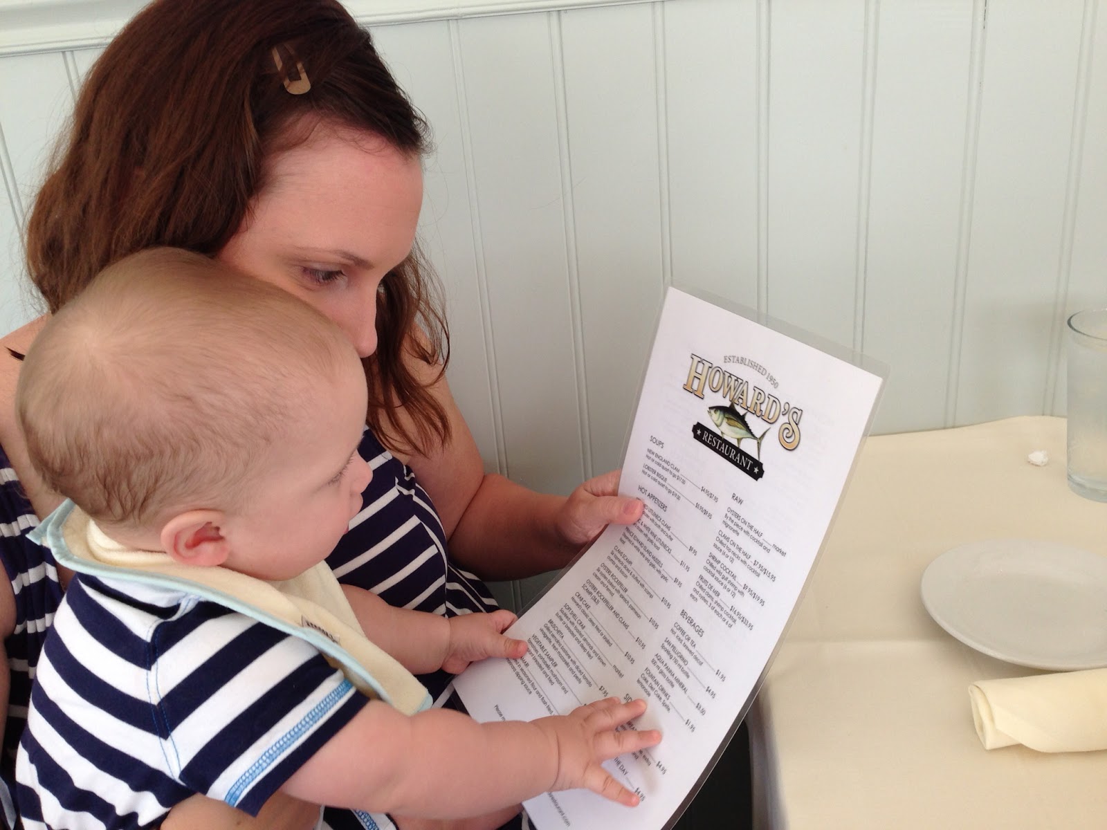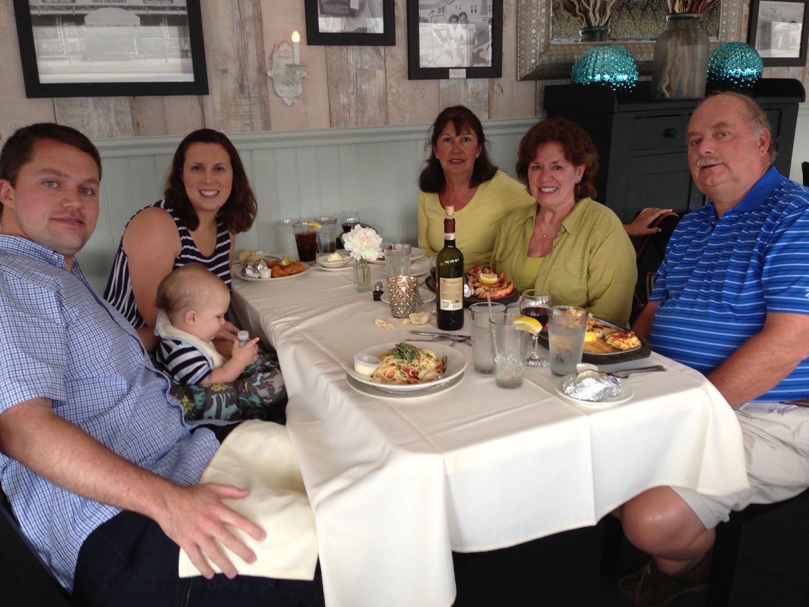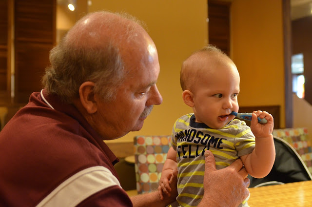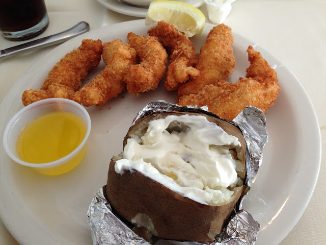 After some quick showers (which Noah does not like!) we headed out for an early dinner at Howard's. I got the fried lobster tail... delicious! Noah just loved eating their bread!