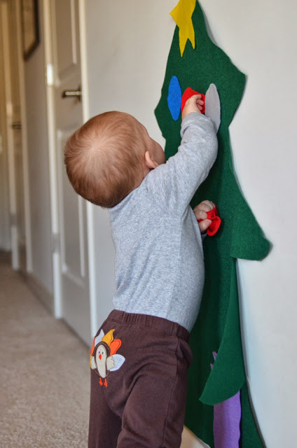 8. Decorate the apartment (Noah proof style). I'm kind of limited in how I can decorate since Noah gets into everything! I figure I will put my Nativity figurines up high on a shelf, put dishcloths up in the kitchen, and maybe even hang some christmas lights around the apartment where Noah can't reach. I'm also tempted to make this felt tree for him, though I might not be crafty enough for it!
