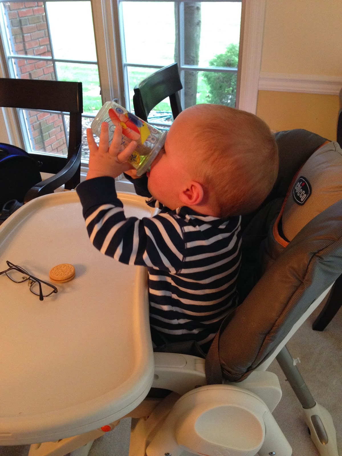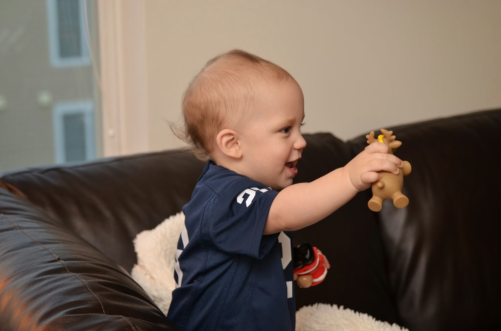 Chris picked up these super adorable bath toys at Walmart the other day. He said there was another one that was a stack of wrapped presents, but he liked these better. While they are technically bath toys, Noah has had more fun playing with them out of the tub so far! On a side note, this is why we have a hard time finding "gifts" to give for his birthday and Christmas. As soon as we see something cute that we think Noah will like, we just give it to him! We should probably start saving some things to wrap or put in his stocking!