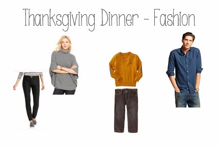 This year we will be spending Thanksgiving with Chris' family. We want to look nice, but since eating a lot of food is involved, we also want to be comfortable! For myself, I like the idea of some stretchy pants and loose sweater, such as a poncho. For Chris, I know he will stick with his normal button down shirt and some jeans or khakis. For Noah, I think it would be classic Fall/Thanksgiving for him to wear a rich golden sweater with some dark grey cords!