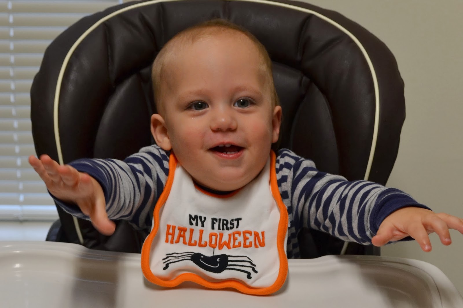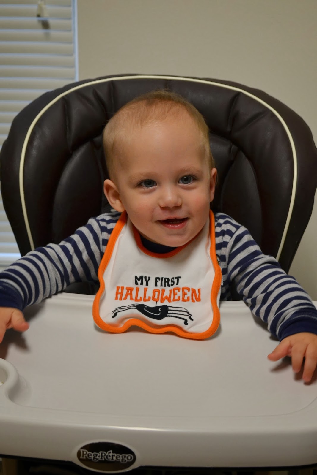 We've had a very fun weekend celebrating Noah's 1st Birthday.  A friend of mine did me a huge favor and took pictures during the party so that I could enjoy the party (and be in the pictures).  So once I get them from her I will be doing a big birthday party recap.  Today I want to recap Noah's 1st Halloween!