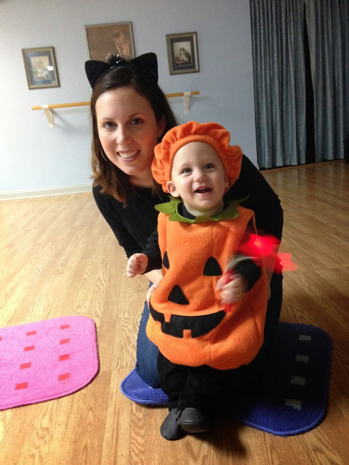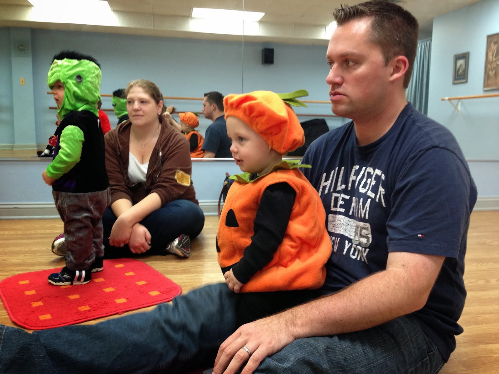 Even though Halloween was over, the kids all dressed up for our Friday Music Class.  Since Chris was home to help out with party preparations, he came with us to class.
