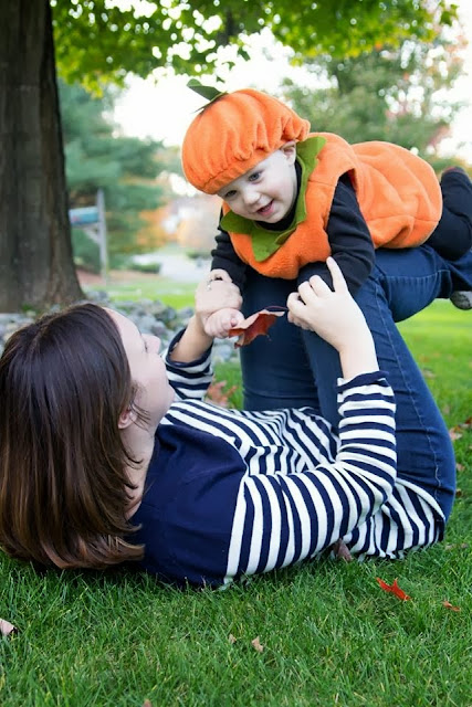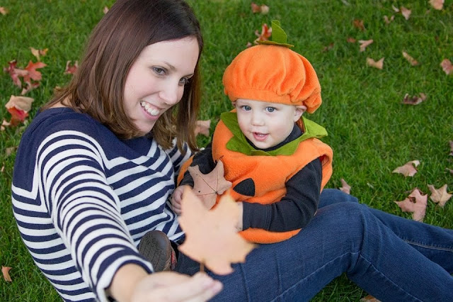 Noah dressed up as a cute little pumpkin.  Last week, my friend Kristen (the same person who took pictures at Noah's party) took some pictures of Noah in his Pumpkin costume.  I haven't even seen them all, but so far I love all of them.  I'm so glad I got some pictures of him in his costume without all the craziness of the actual holiday.