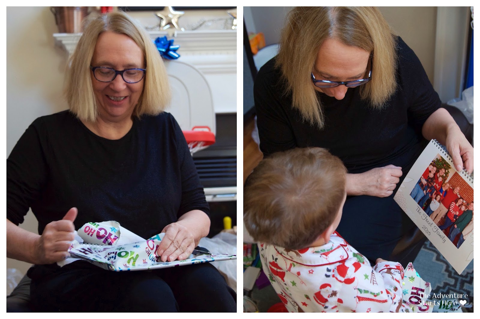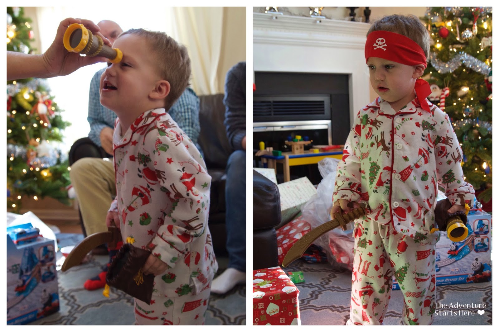 My parents and brother then came over to give Noah his presents.  I get my love for Christmas from my mom.  She works so hard to make sure everyone has a magical Christmas and gets gifts they love.  My mom had to take a separate car to our house because she had so many gifts to bring in what she called her "sleigh".  Noah is going through a big Jake and the Neverland Pirates phase right now, so he loved all the legos and dress up toys he got!