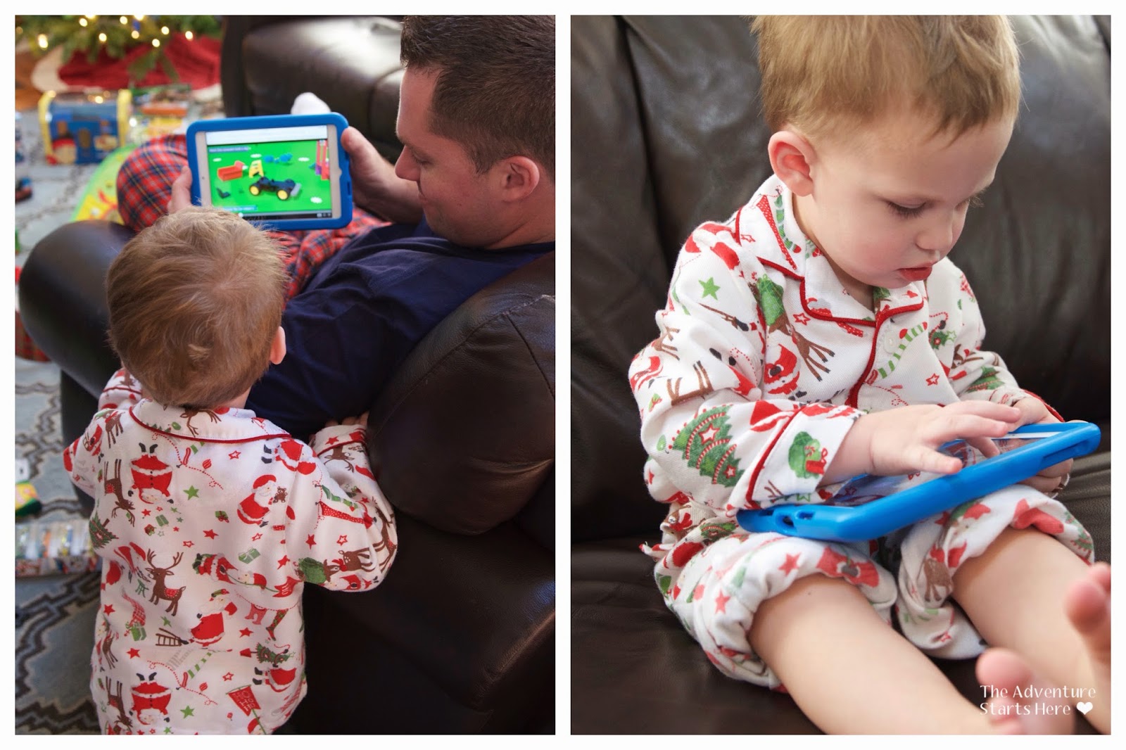 But I'd have to say his favorite gift was his new iPad mini from Grandma & Grandpa!  He had no clue what it was from the box and actually tossed it aside at first!  But once Chris opened it and put the case on, he immediately clued in started watching his YouTube digger shows.  He was a happy camper on Christmas!