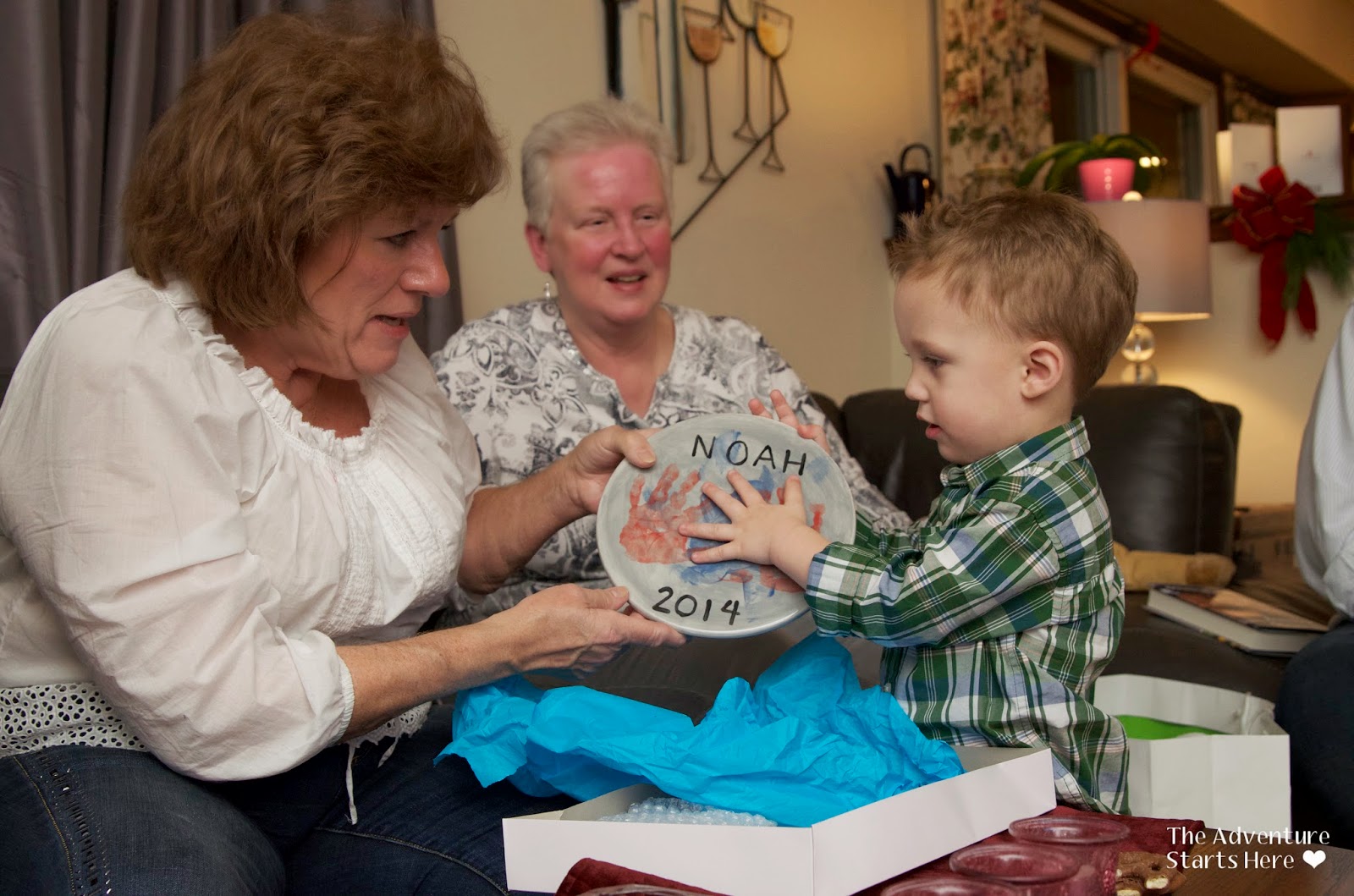 ^^^ Noah painted and put his handprints on a trivet for both sets of grandparents... they loved it!