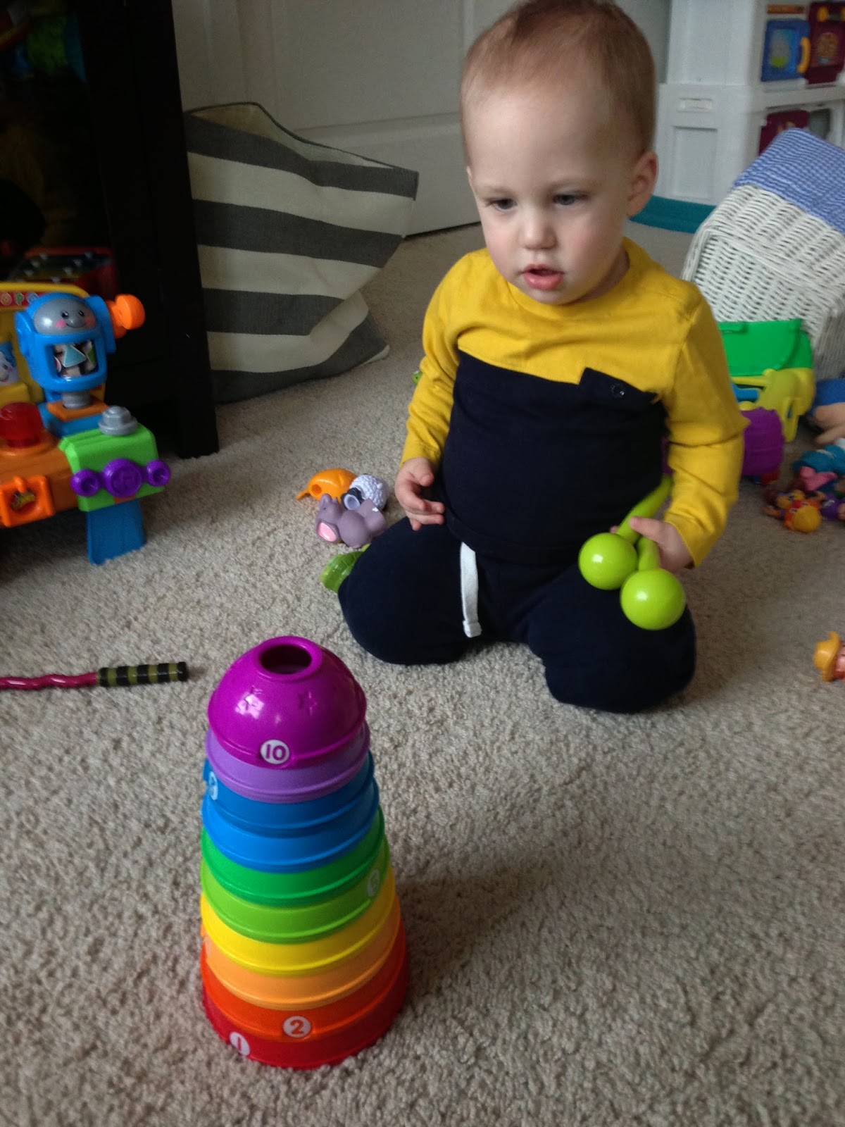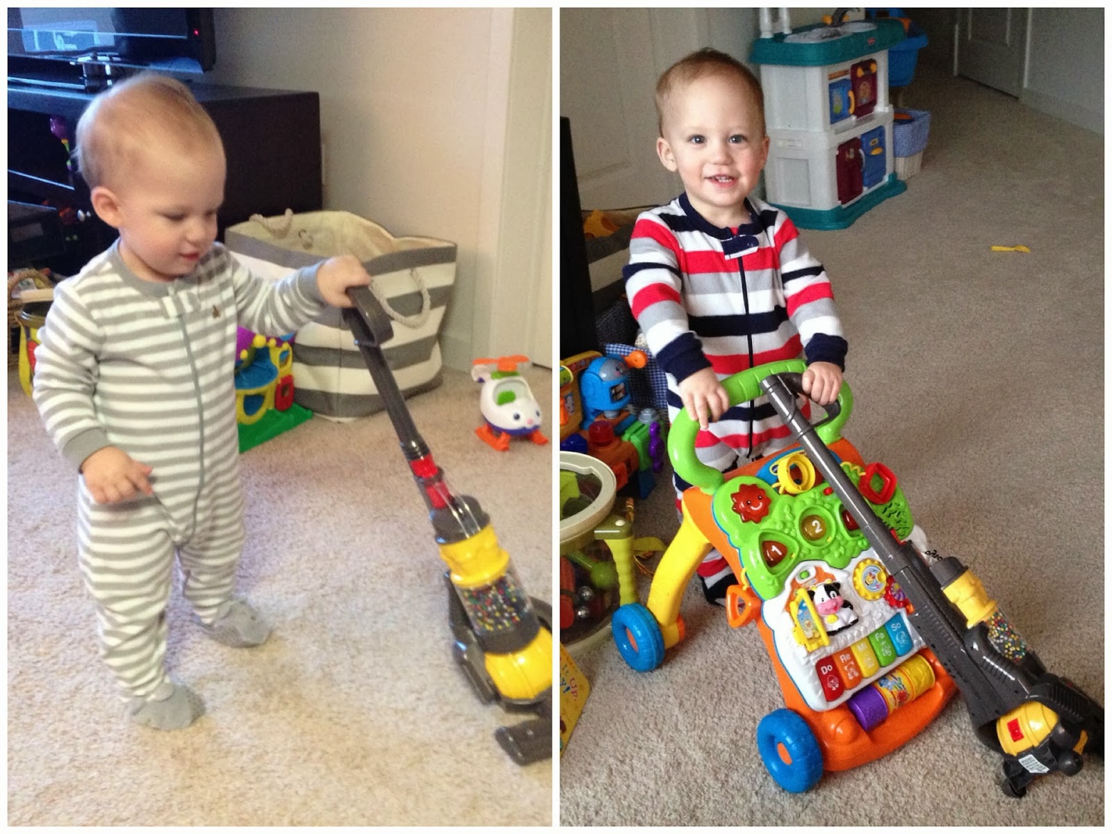 I LOVE the weekends! Not only is it great to spend time as a family, but Chris gets up with Noah and lets me sleep in. I know, I married a winner! They get their one on one time and I get some extra sleep. Whenever I come out, Chris always has at least a couple of pictures he's taken of Noah playing.