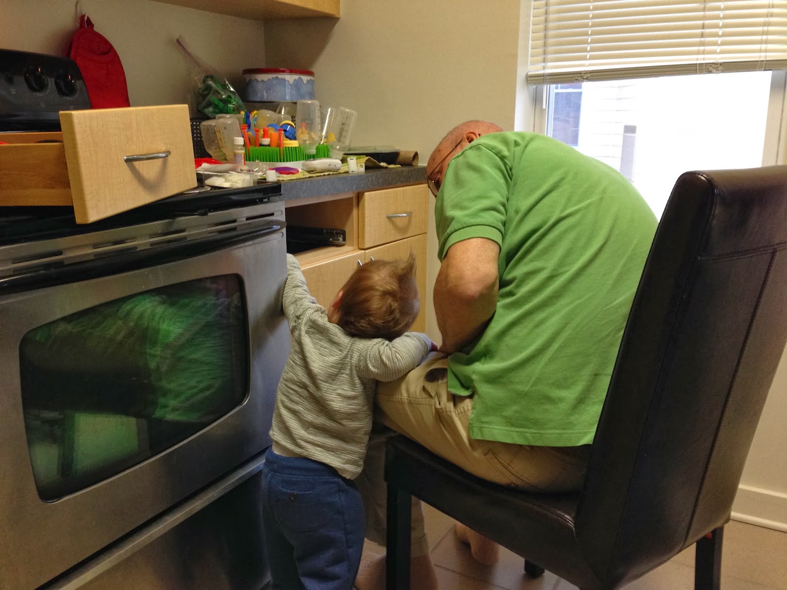 We baby proofed the lower cabinets awhile ago. But we didn't do the drawers because he wasn't tall enough at the time. Well now he is, and he loves opening the drawer full of random kitchen utensils and emptying it out. So I had my dad come over this week to install the locks. They didn't work great, so we ordered more of the magnetic locks (like we used for the cabinets) and he's going to come back and install those.