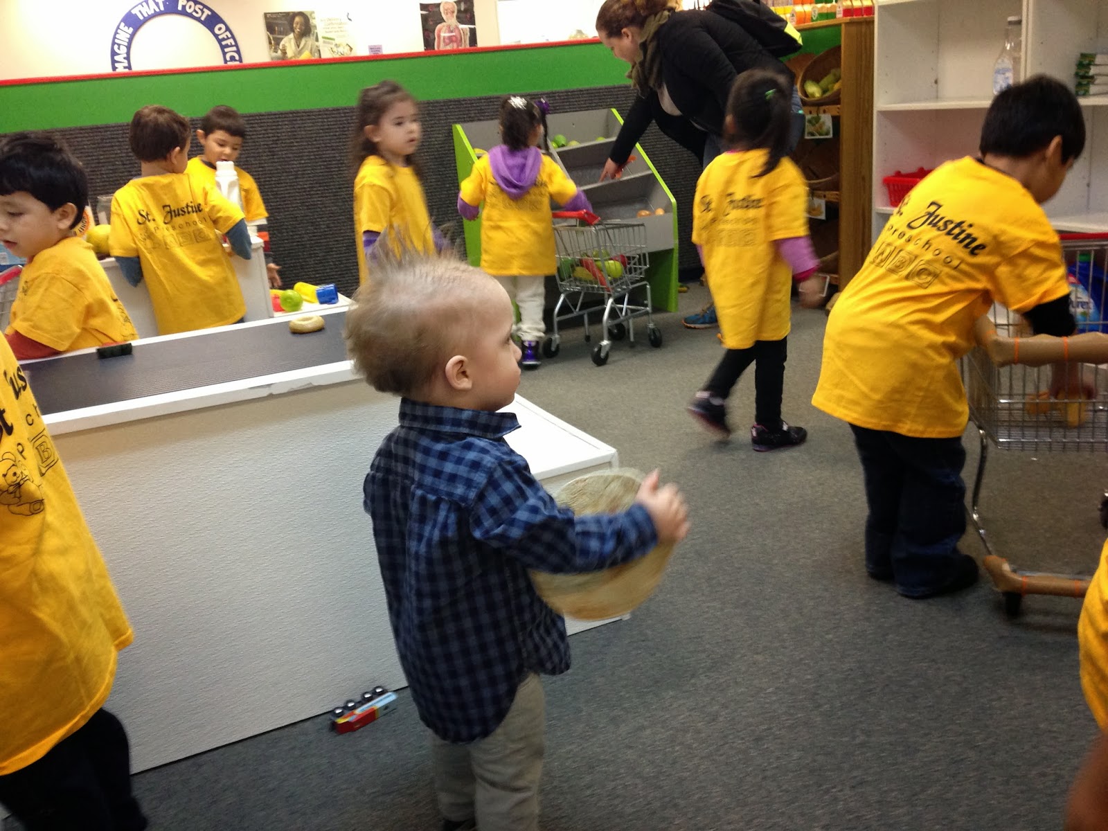 This week Noah and I went to a play date at the local Children's Museum. It was a lot of fun, but the place was PACKED because of a preschool field trip. Noah had fun staring at the older kids, but it made it harder on me since I had to follow close behind him to make sure he didn't get trampled or lost.
