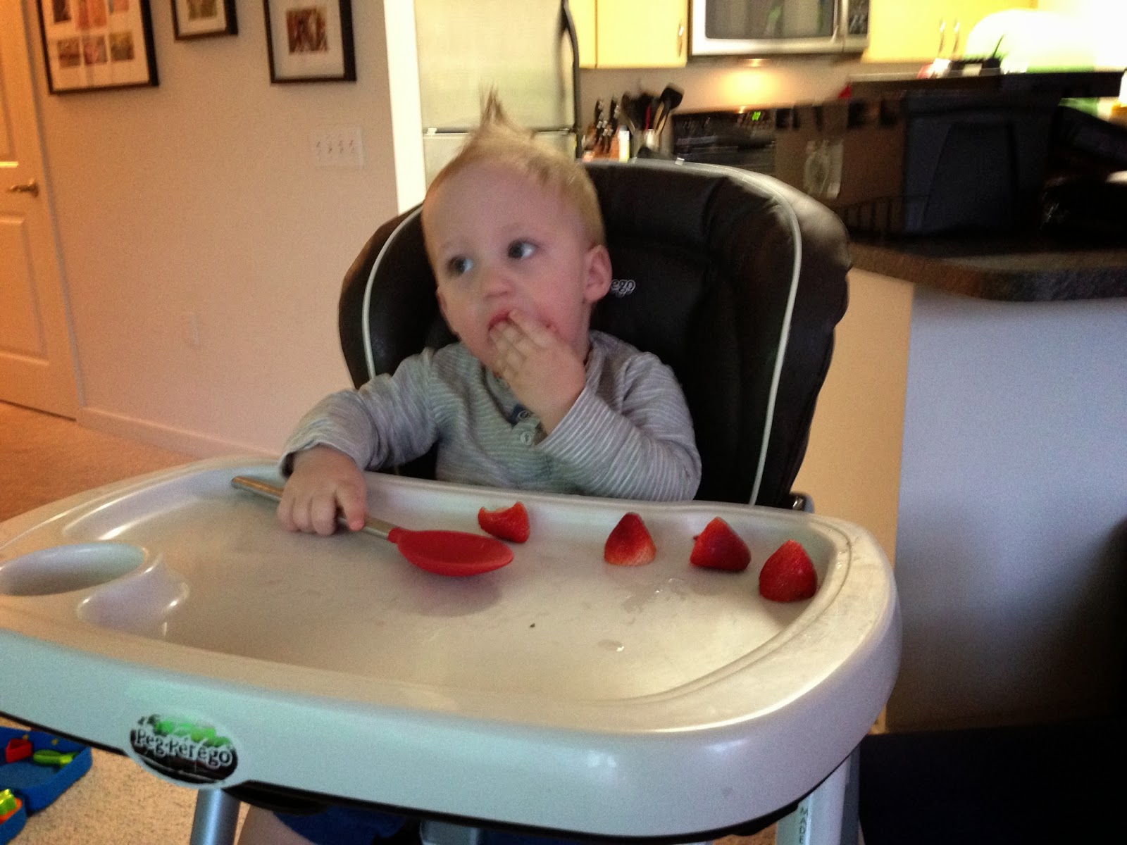 Noah has been going through a "not eating" stage. It's really tough trying to find things that he will actually eat. Thankfully he will usually eat fruit. And Wednesday I was able to get him to eat yogurt AND goldfish crackers after his nap… WIN!