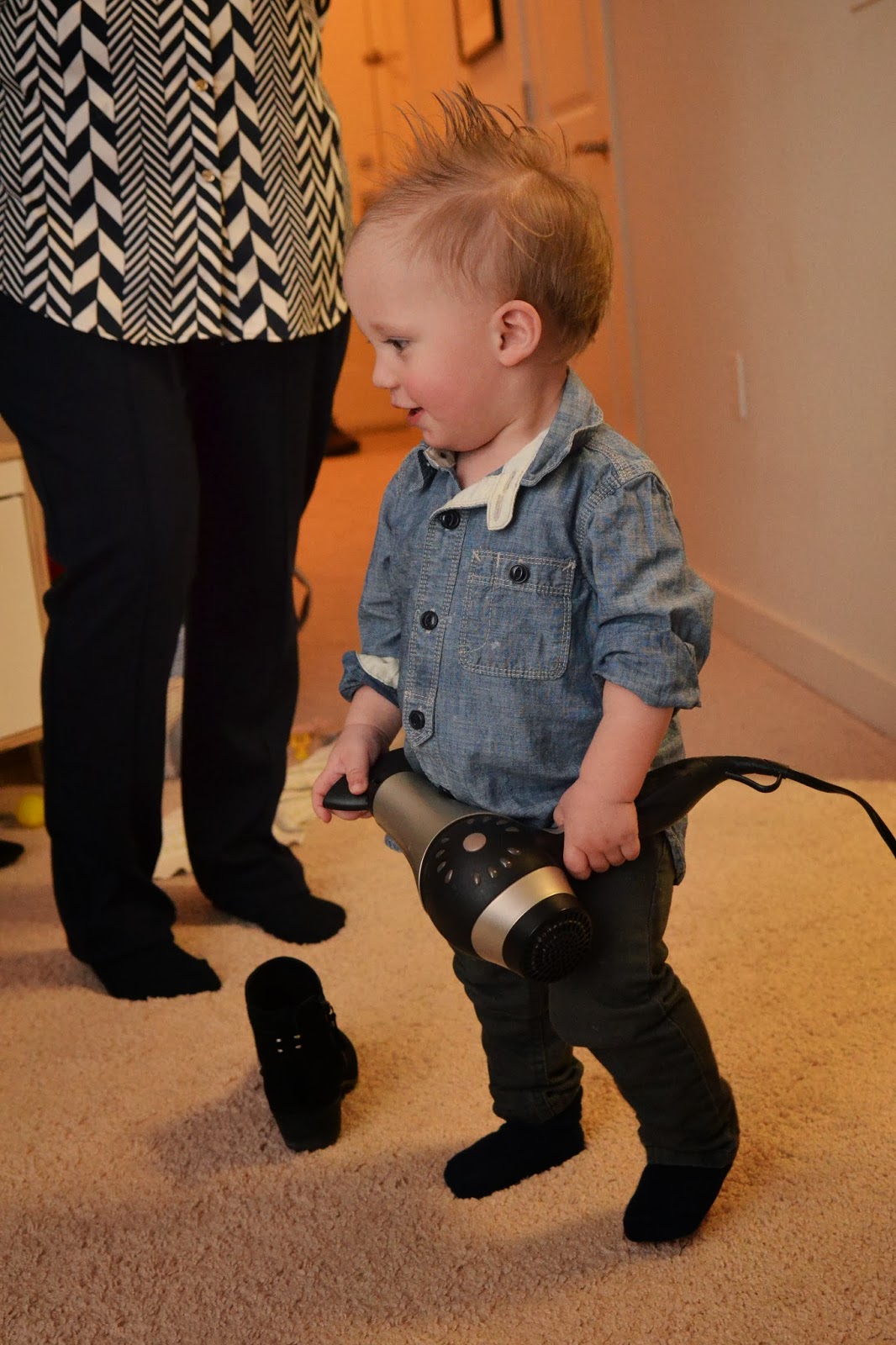 Noah is now officially a toddler in my eyes. Since he was a late walker, I still viewed him as my baby. But now that he's walking everywhere, he really looks like a little boy. The new shoes and gelled hair just adds to it.