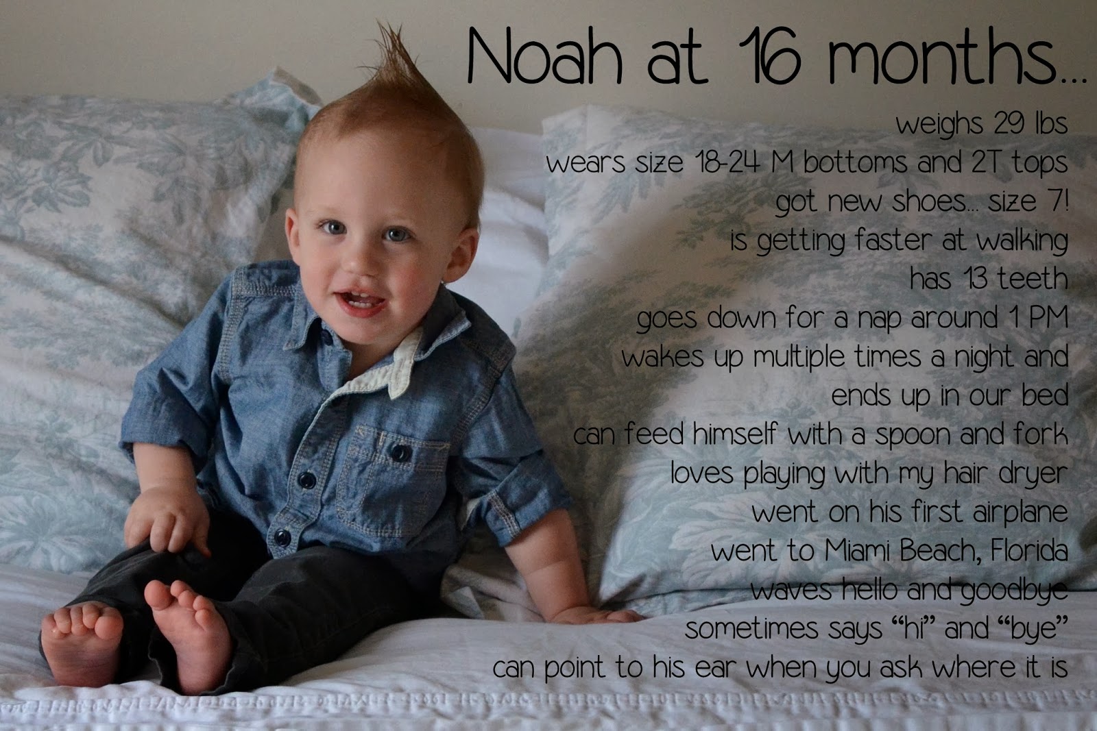 Noah is just too darn cute! 16 months is such a fun age where they really start learning all kinds of fun things! I'm a new follower and have a 3 year old daughter. Learning all about little boys is so interesting to me since I have not gone through that and hopefully one day we might welcome a baby boy into our family!