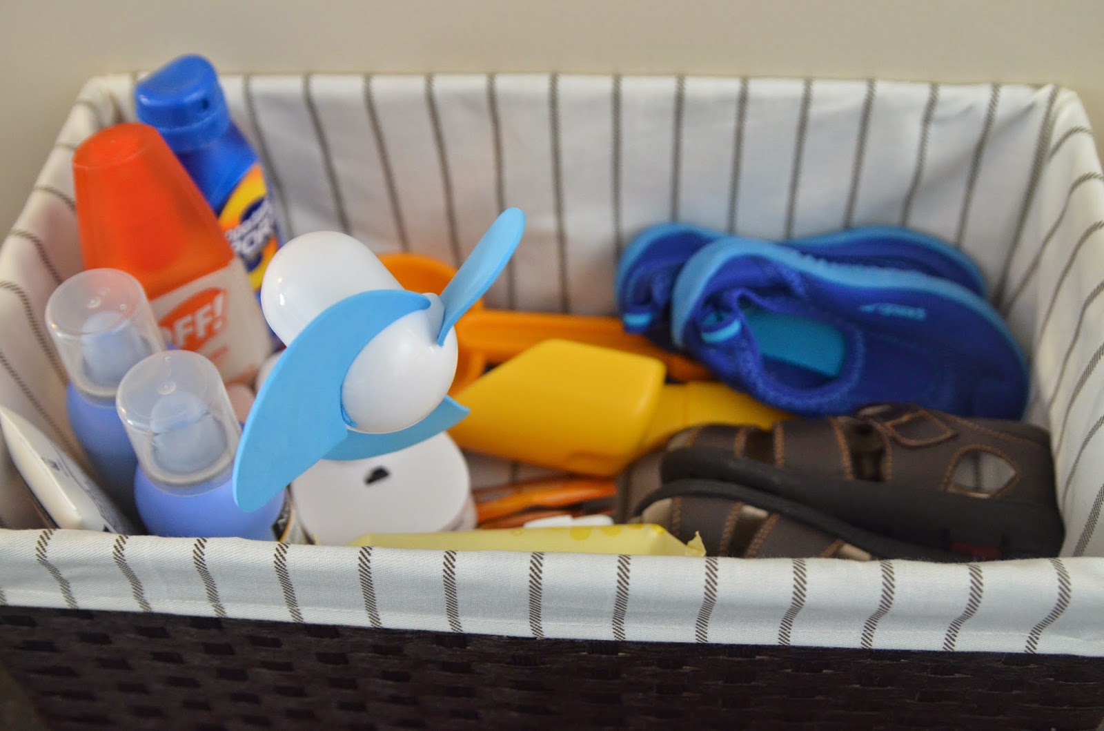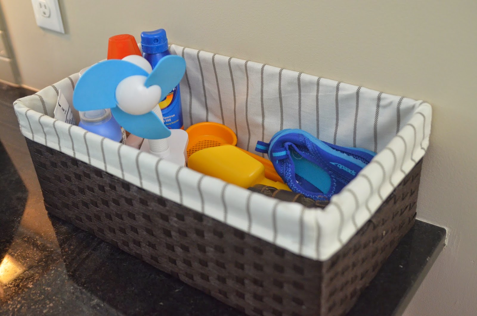 I set up a basket inside right by the sliding doors with sunscreen, bug spray, water shoes, and sandals.  This way we can get outside fast!   I also plan to bring our Bose potable stereo out (once I find which box it's in) so we can enjoy some music during dinner :).